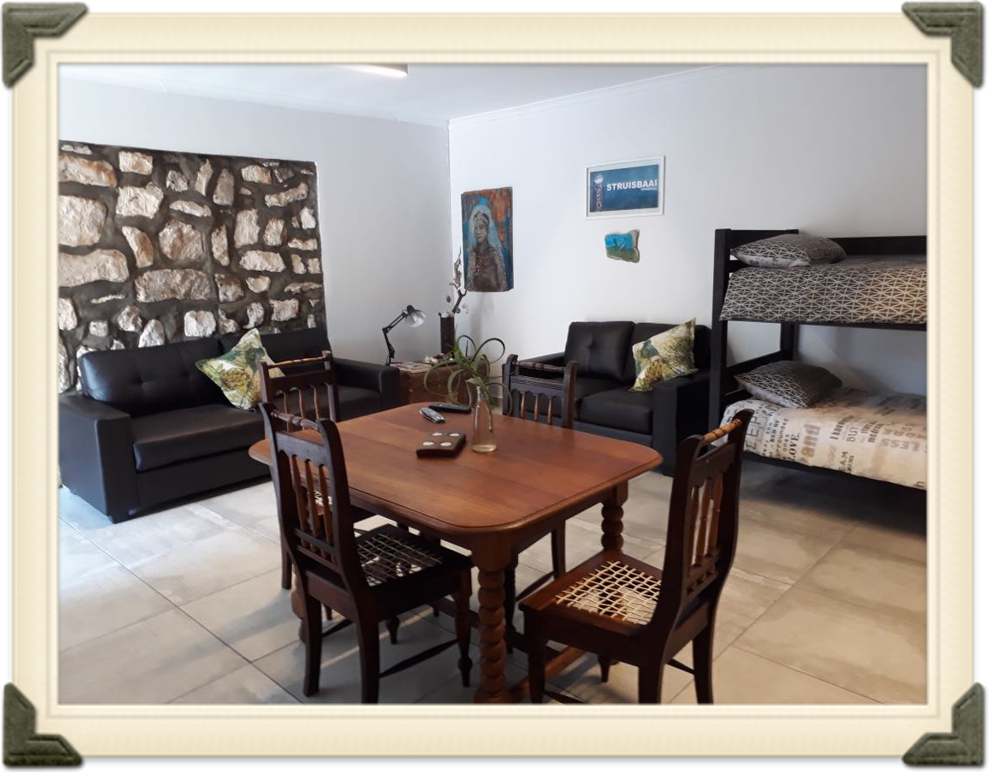 Spacious, private suite with a comfortable king bed, en-suite bathroom, well equipped kitchenette and seating area. Perfect stopover for a relaxed stay in Struisbaai/LAgulhas. WIFI, Lights, Hot water and a Gas cooker available during load-shedding. Secured off street parking. 5km from the most southern tip of Africa, 5 minute walk to the nearest beach and in close proximity to the working boat harbour, restaurants and the longest beach in Southern Hemisphere.