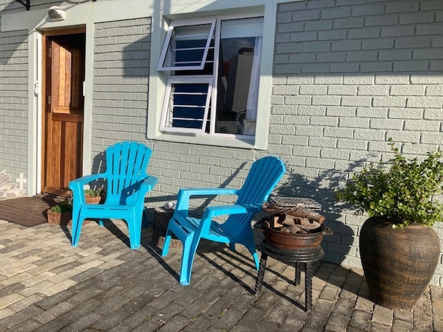 Kick back and relax in this calm, stylish space with a 180 degree panoramic view of Struisbaai. This eco conscious space is powered by solar and gas and has rainwater storage tanks …thus no load shedding or water supply issues. It has its own shaded patio, outside dining area and a wood fired hot tub. It is within walking distance from the beachfront, harbour, shops and restaurants. The accommodation consist of a studio area , mini kitchenette, queen size bed and an oversize walk in shower.