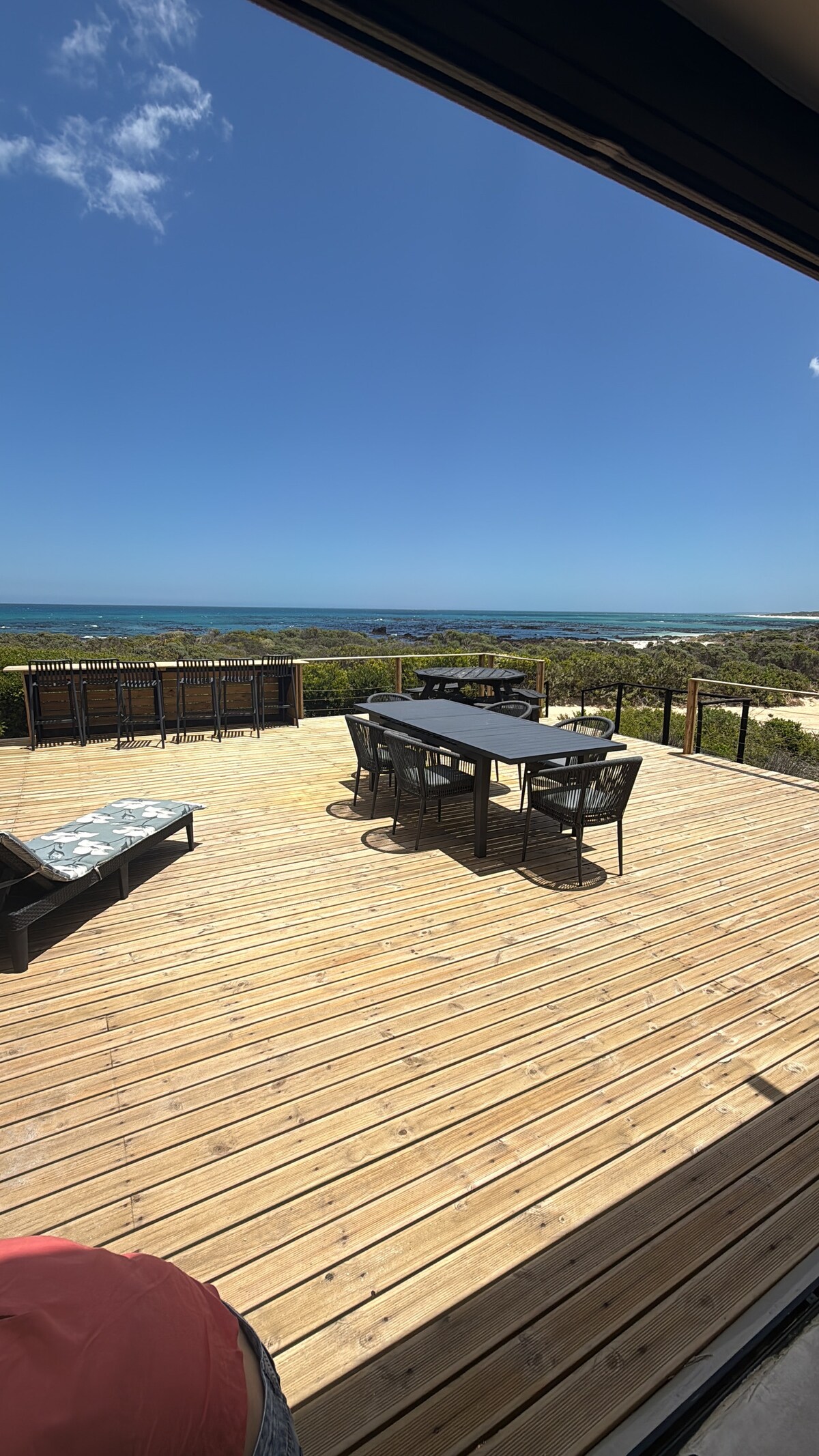 Escape to Kleinbaai, a peaceful seaside hamlet just over 200 km from Cape Town. Our modern open-plan home offers ocean and mountain views, just steps from the tidal pool, golf course, and harbour for world-famous shark cage diving. Walk to acclaimed restaurants, explore nearby hiking trails, or simply relax on the deck with cool breezes and balmy evenings. Perfect for couples, families, or adventurers seeking a unique coastal getaway.