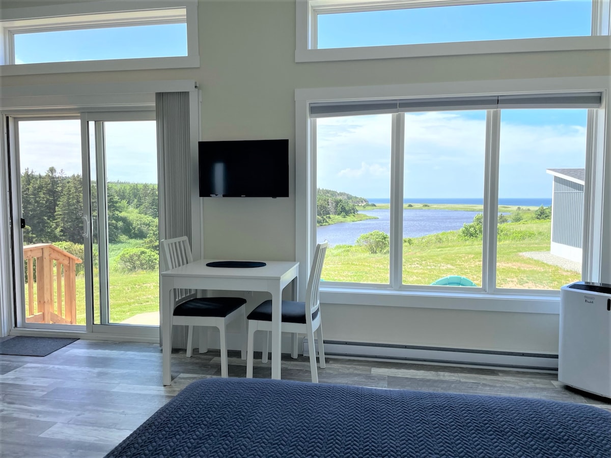 Nestled between Sugar Loaf Mountain and the waters of Aspy Bay, just 10 minutes off the Cabot Trail, Open all year round . Our Blissful Beachfront Bungalow sits on a 9 km long stretch of pristine pink sandy beach consisting of Cabots Landing Provincial Park, North Harbour Beach and South Harbour Beach. Spend your days exploring world class hiking trails, golfing in nearby Ingonish or the skiing at the newly developed Cape Smokey. Relax , disconnect and enjoy this magical private space .