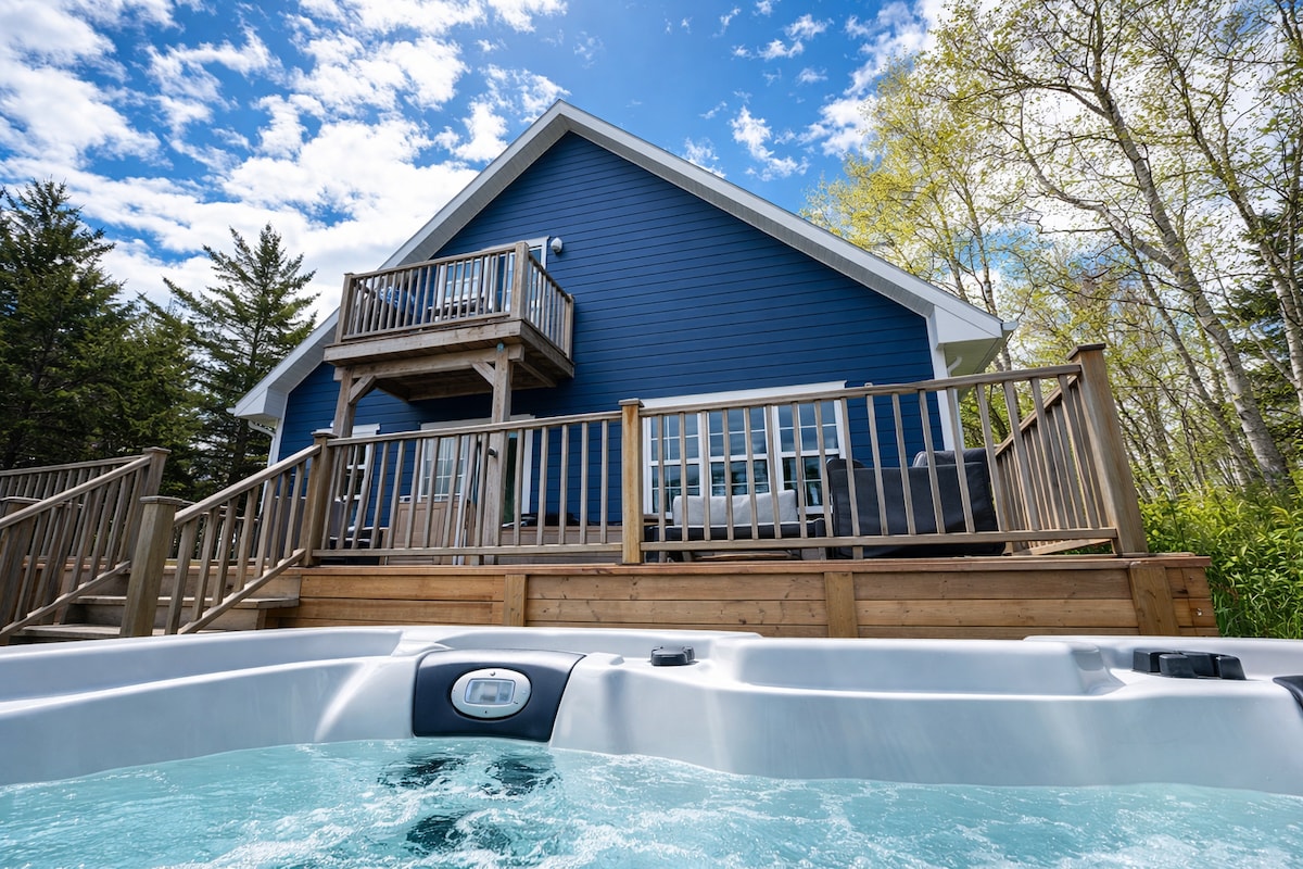Slow down and discover an enchanted place full of warmth, charm and distinctive amenities. Chic cabin, surrounded on three sides by woods, with a spectacular view of the Cape Breton Highlands. Just off the famous Cabot Trail, blocks from the sea, though still within town, enjoy quiet and convenience. Wood fired hot tub and pizza oven. (Wood provided) Five minute walk to the lovely L'abri restaurant and bar, just a little further to The Doryman music venue.