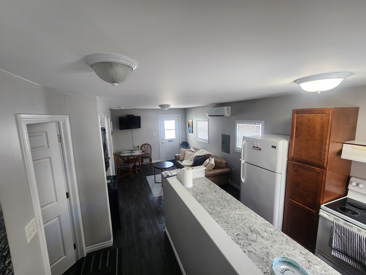 Completely renovated 2-bedroom, 560 sq. ft. located 20 metres from water on the Bras d'Or Lakes. Wrap-around deck, pine interior. Washer, dryer, dishwasher, 3-piece shower bathroom, water cooler, full sized fridge, stove, microwave. Wifi, smart TV and satellite included. Excellent cellular coverage. Minutes drive to: Beaver Cove Takeout: 2 Highland Village & pub: 20 Sydney & 4 golf courses: 30 Baddeck: 60 Cabot Links and Cliffs Golf: 90