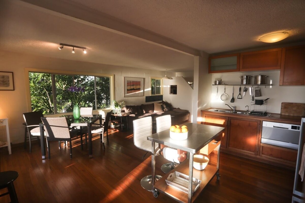 Welcome to your home away from home! As soon as you arrive, you understand why Anne’s on the Green has been a firm guest favourite. Situated 5 minutes from the heart of Byron Bay, perched atop of Byron Bay Golf Course with a view over the green, this gorgeous two-bed guest house offers all the tranquility you need.. A stunning architectural design, Anne on the Greens has views for days, catches all the breeze, and provides a calm that your holiday needs. Furry friends are welcome too!
