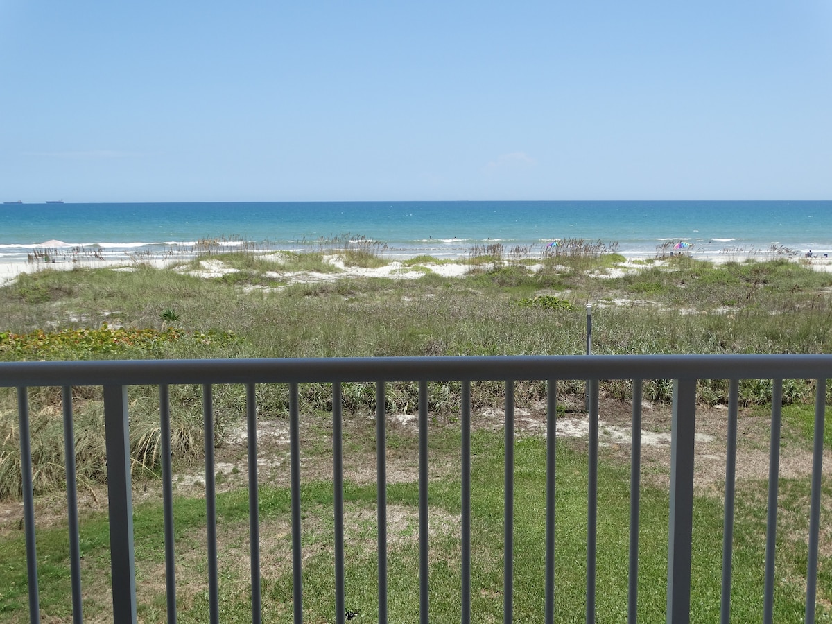 It's all about the view at our condo directly overlooking a beautiful, wide section of Cocoa Beach. There are expansive beach views from the living room, kitchen and master bedroom. This two bedroom, two bath condo is fully stocked for your stay. The complex has a heated pool and hot tub. Inside the condo, the master bedroom has a king size bed and the second bedroom is setup with two full beds. The master bath is en suite with a shower and the second bathroom has a shower/tub combo.
