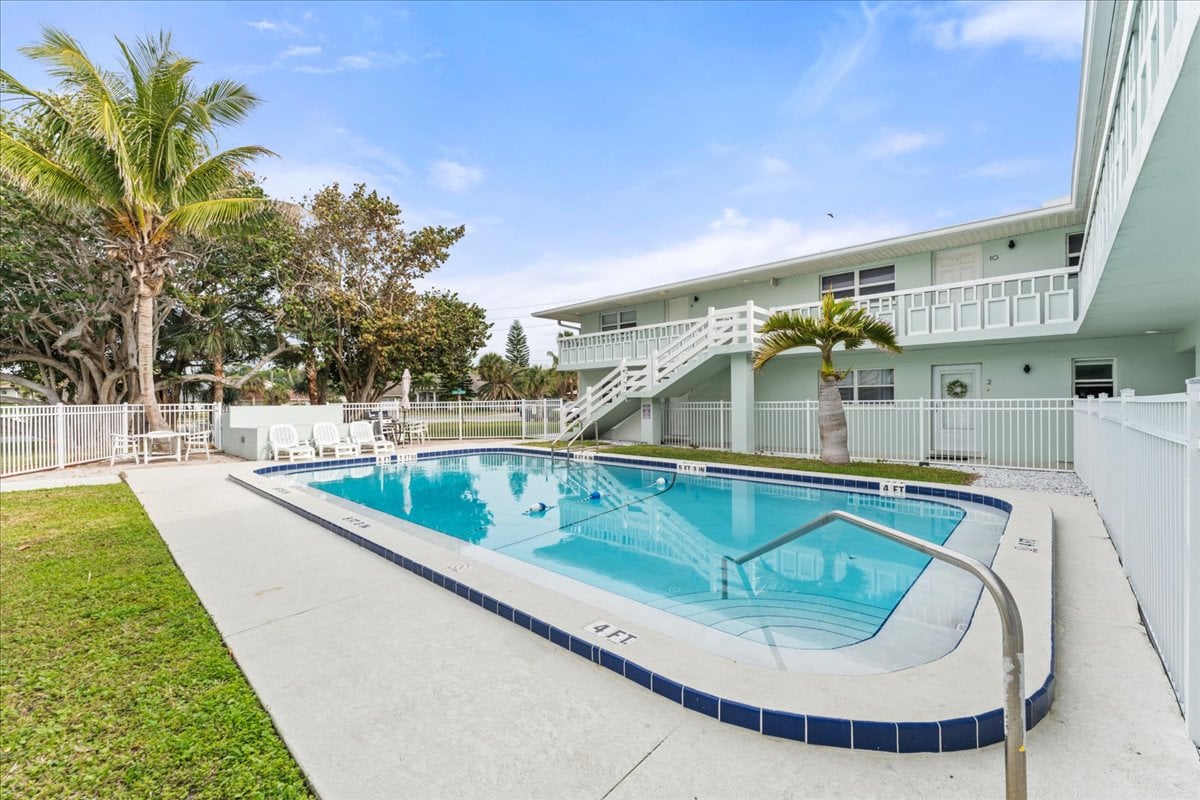 This top-floor condo is just 102 yards from the beach line in the heart of Indialantic. Newly Remodelled w CB2, RH. Surrounded by restaurants and shops, it offers ample space and amenities for every taste: whether it's a romantic getaway, a fun-filled family vacation, a reunion with old friends, or just some much-needed 'me time. Fully equipped with beach gear, kitchen essentials, toiletries, and TVs in each room. Additionally, guests can enjoy the saltwater pool, beautifully lit and open 24/7