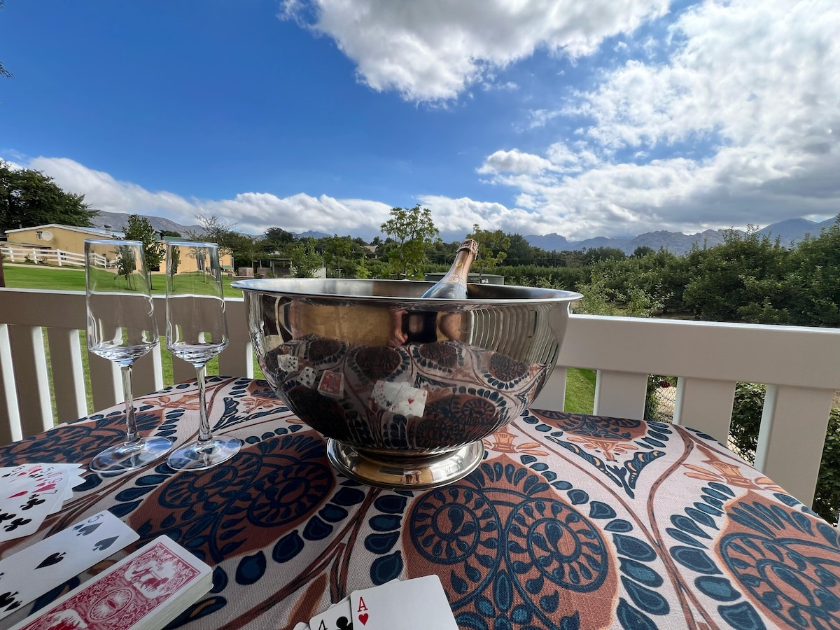 This Spacious and peaceful apartment is exclusively yours. Guests can enjoy the farm, river, dam and mountain all in one. Your fitness workout starts right from your doorstep. Jonkershoek nature reserve is also only minutes away. Relax on the big couch in front of a wood burning fire during cold and rainy days. Enjoy a glass of wine, a barbecue and views of the mountains from your private veranda. This is a perfect "work from farm" space. Or hop to town for good food and wine to your delight.