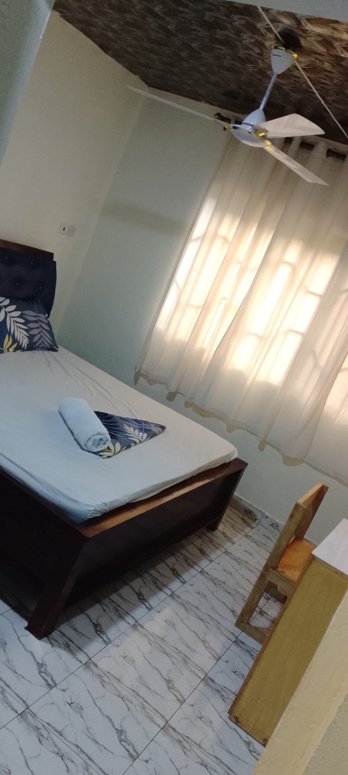 Forget your worries in this spacious & serene 1/1 guesthouse in Cape Coast, Ghana! You will have 2 cold a/c units that you can find in the bedroom & living room. Ceiling fans in kitchen, living room & bedroom. Enjoy a nice hot shower, an amazing soft comfortable Queen size bed to relax in. While relaxing unwind with Netflix or our excellent WiFi service. Nice size kitchen with all your basic cooking needs to create an awesome meal. A small workstation to handle last minute business arrangements.