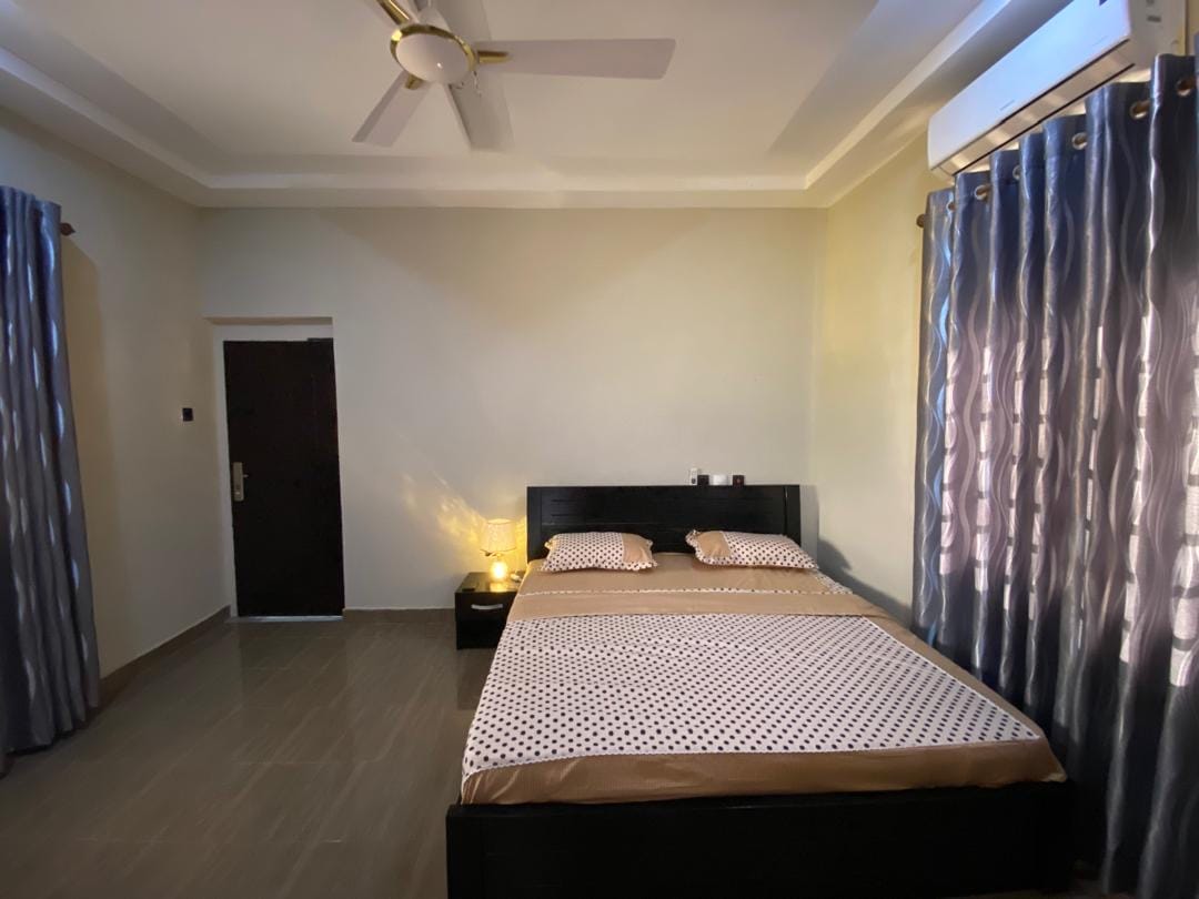 Forget your worries in this spacious & serene 1/1 guesthouse in Cape Coast, Ghana! You will have 2 cold a/c units that you can find in the bedroom & living room. Ceiling fans in kitchen, living room & bedroom. Enjoy a nice hot shower, an amazing soft comfortable Queen size bed to relax in. While relaxing unwind with Netflix or our excellent WiFi service. Nice size kitchen with all your basic cooking needs to create an awesome meal. A small workstation to handle last minute business arrangements.