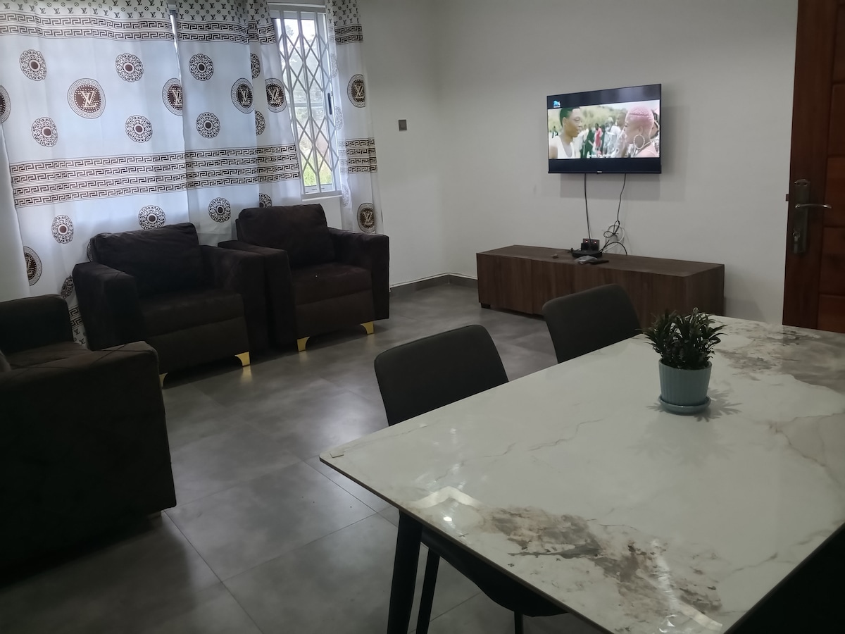 Stay in the heart of Cape Coast at this vibrant, fully furnished 2Br apartment with African decor and all modern comforts. Located on the first floor of a new building. this stylish space offers the perfect mix of culture and convenience. Featuring 2 ensuite bedrooms, electricity, water and wifi included. whether you are visiting for business, leisure, or a long term stay, you will love the authentic African vibe, comfortable setting, and easy access to everything Cape Coast has to offer.