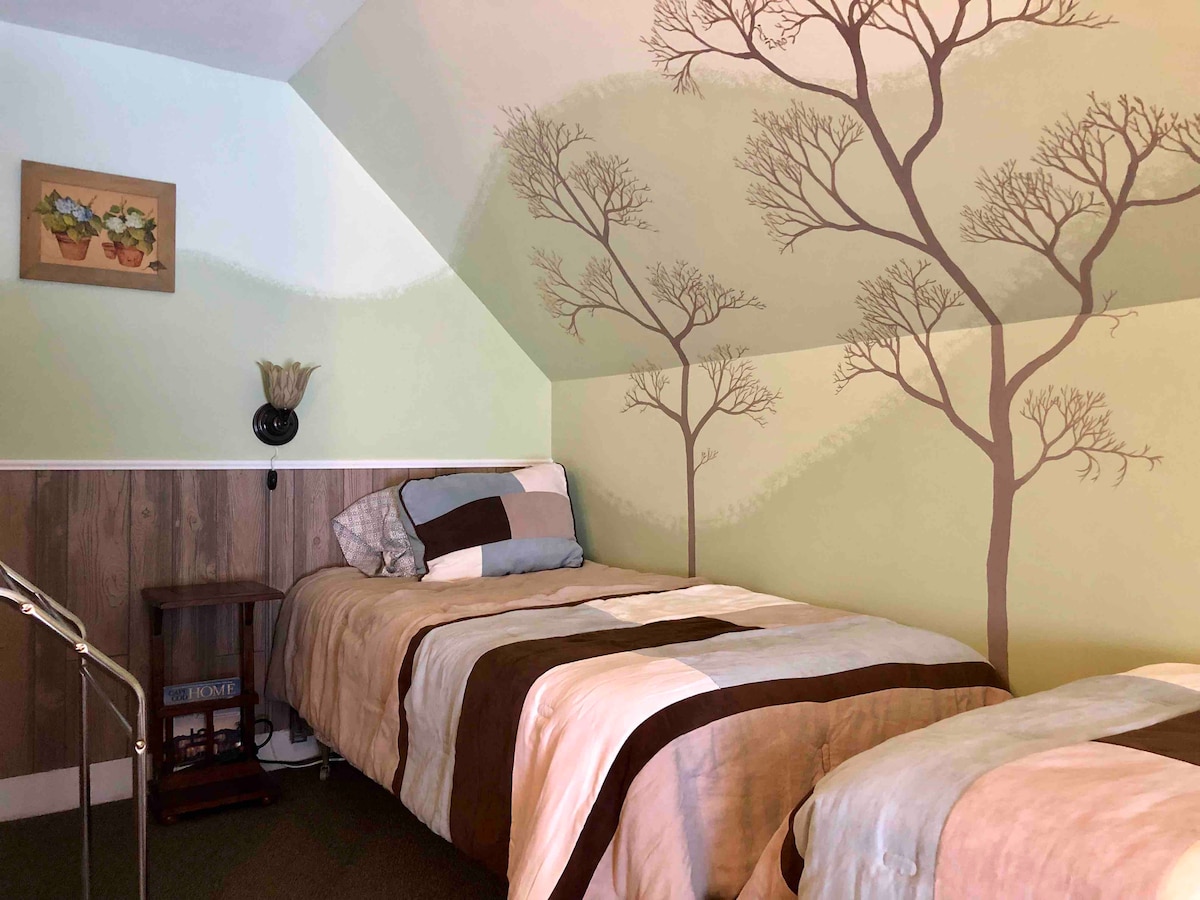 3rd floor, small bedroom with two twin beds and shared bathroom. At most, there will be 5 people using this bathroom. Steep stairs warning to whoever may have a concern. Our rooms are for guests with a lower budget. Our guests do not have kitchen access and we don't have TVs in the guest rooms. Please check "Other things to note" section for parking options and cancellation policies. Also please acknowledge that you have read it when you sent a booking request. Thank you!