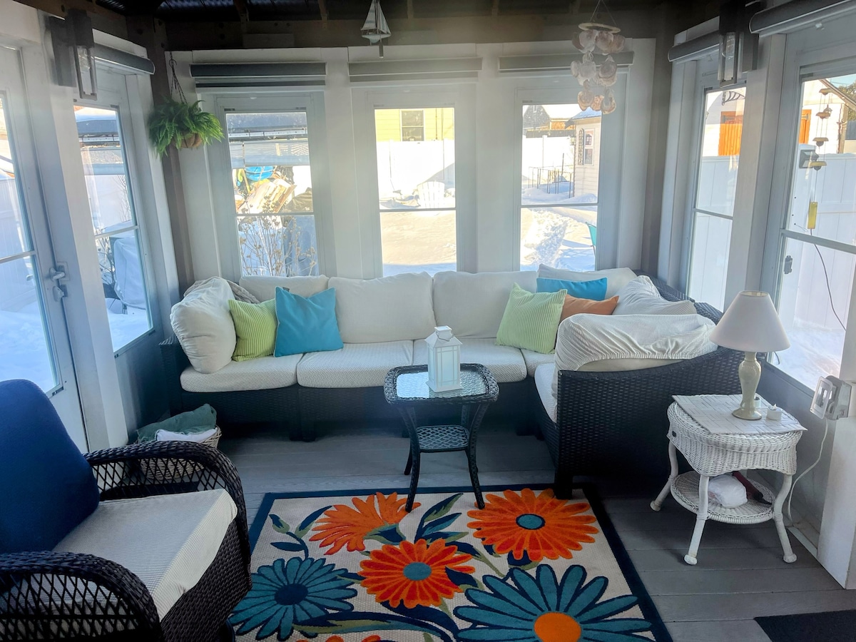 This spacious 4-bedroom home offers peace and privacy in rural Little Compton. The open layout includes a gourmet kitchen, dining area, and two living rooms with smart TVs and surround sound. The master suite features a king bed, sauna, and a luxurious bath. The property includes a private yard, ample parking, and showcases local artwork. Please note: no pets and no parties. Winter monthly rates do not include utilities.