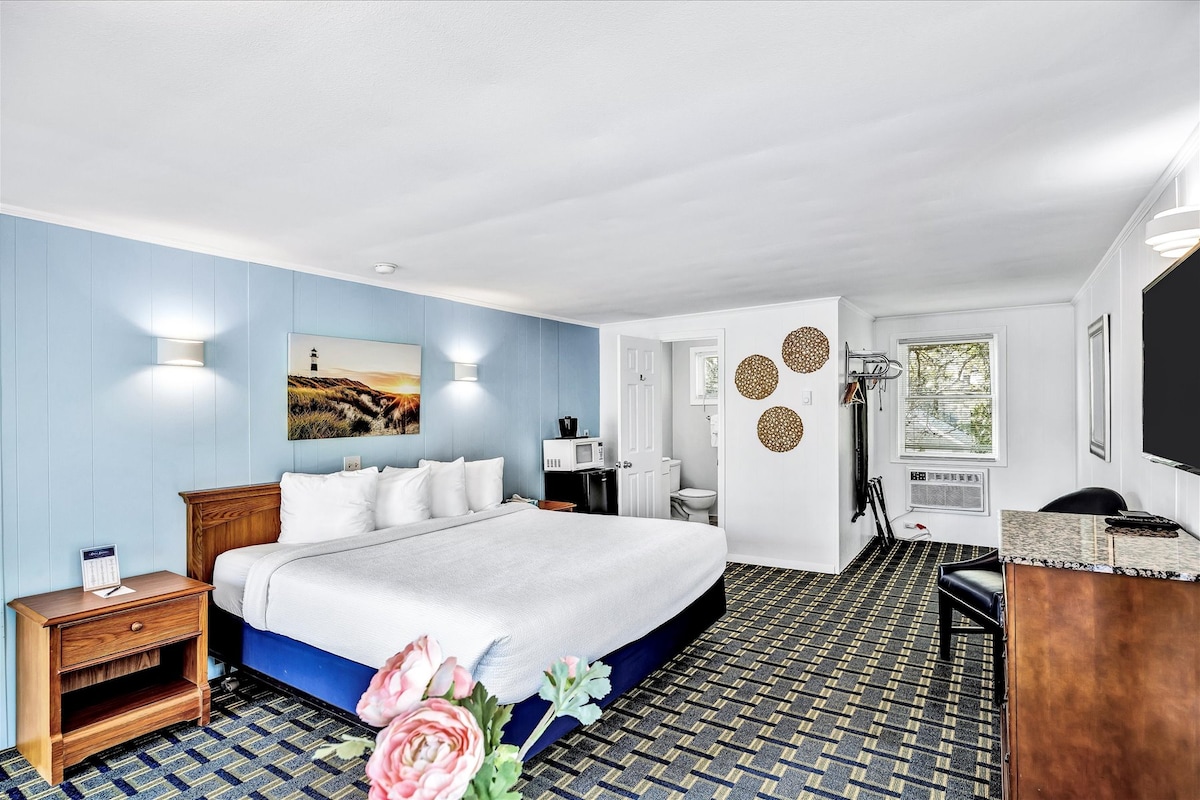 🌊 King Room at The Green Harbor Hotel Spacious, stylish, and designed for comfort — our King Room is perfect for guests looking to relax and recharge on the South Shore. Room Highlights: • One king-sized bed • Modern tiled bathroom • Generous layout with custom built-in storage • Private attached deck • Smart TV with Netflix, Hulu & more • High-speed WiFi • Microwave, mini fridge, and work station • Free on-site parking • Close to local bars, restaurants, and shops