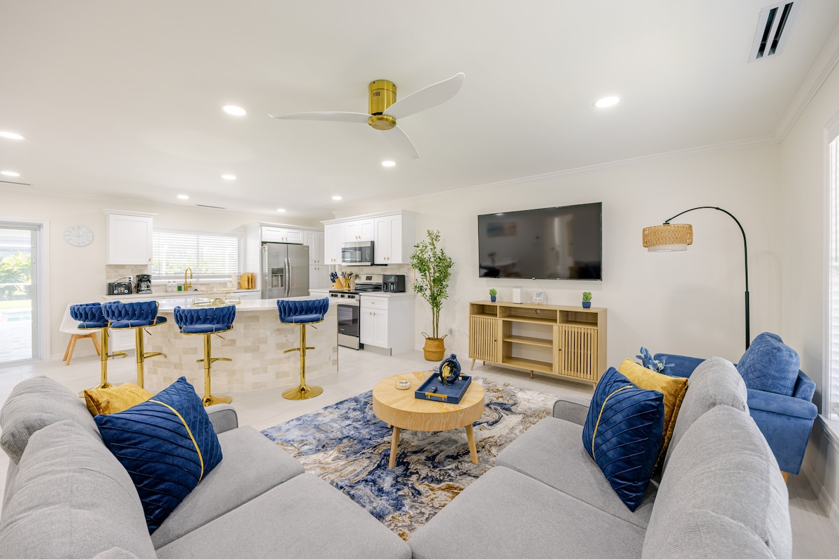 Welcome to your dream getaway! This newly remodeled pool home offers luxury and comfort for up to 8 guests. Enjoy sunny days by the oversized pool or relax in the spacious outdoor area with lounge furniture and BBQ. Inside, you'll find a stylish open-concept living space, a fully equipped kitchen, and 3 cozy bedrooms. For entertainment, play pool, darts or shuffleboard. With high-end finishes and modern decor, this home is perfect for family vacations or friends’ retreats.