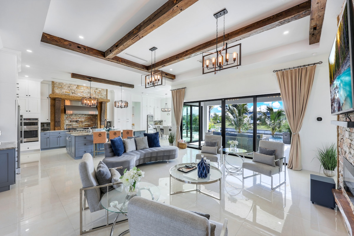 Welcome to our newly built waterfront home, a modern masterpiece offering stunning waterfront views, relaxing pool/spa, oversized kitchen, and beautifully designed home for your family vacation. We thought of everything so you enjoy a fully stocked rental with all the essentials. Centrally located and hosted by locals, we can accommodate nearly any request to ensure a vacation you'll remember! Did I mention the pool & spa heat is included? We look forward to welcoming you to SWFL lifestyle!