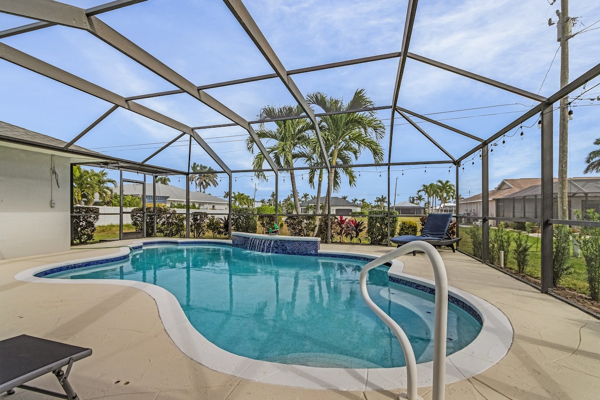 Newly furnished heated pool home in sought-after, established neighborhood minutes to shopping, dining, and Gulf-access boat ramps. Relax and unwind, and enjoy Cape Coral vacationing at its finest! Your family will be close to everything when you stay at this centrally-located place. The cozy patio area invites for relaxing times by the pool with TV and BBQ grill. You will find fishing rods and beach equipment in the garage. Oversized garden area for privacy.