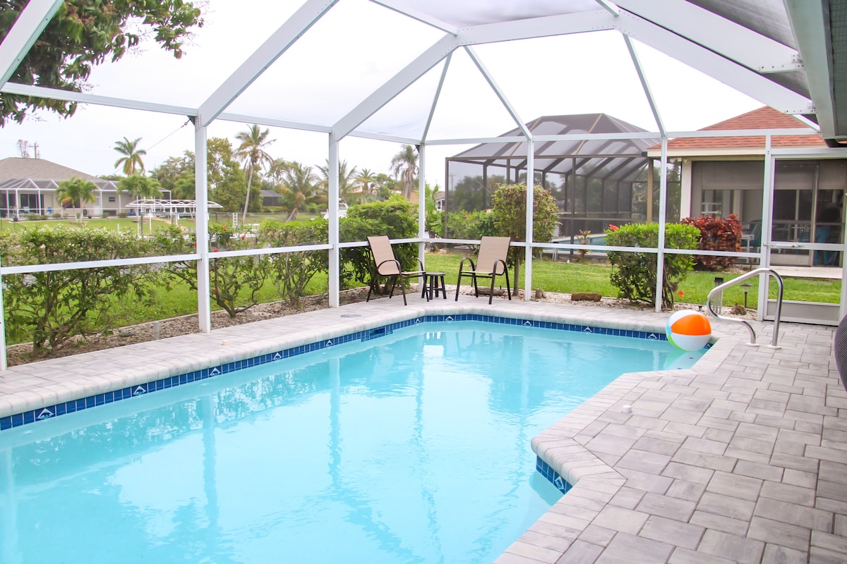 Unwind Cape Coral welcomes you to sunny southwest Florida, close to magnificent beaches, fishing, shelling, Minnesota Twins Spring Training & much more. Come enjoy this new construction home with heated pool, Kayaks, heated and cooled game room (PlayStation 5), gulf access - salt water canal, 4k oled tv's & many more refreshing amenities. You will love this clean & bright home with lovely décor. Located in the highly sought after Pelican neighborhood of Southwest Cape Coral!
