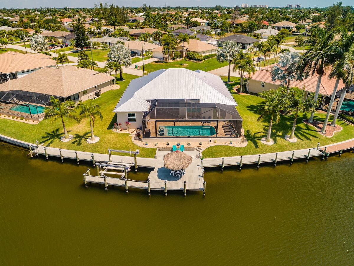 Talk about location! This house is located in southwest Cape Coral close to everything great that Cape Coral has to offer including marina, restaurants, shopping, bike trails, kayaks included etc. Right across the street from Cape Coral's most exclusive neighborhood Cape Harbour. This house has a heated pool facing west for sun all day long and fantastic sunsets, new hot tub, boat dock, and completely remodeled check out the primary bath and all brand-new furnishings including kids stuff.
