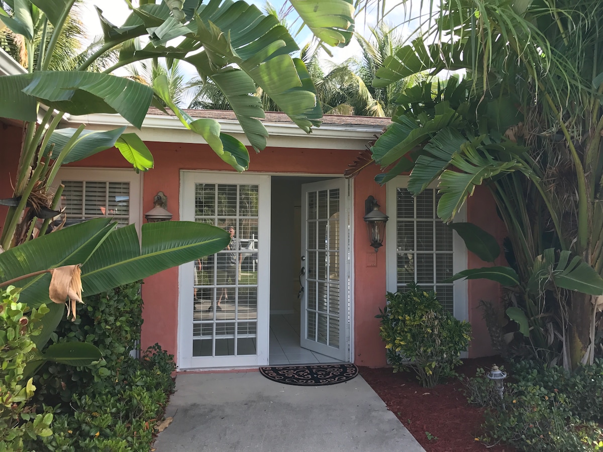 Our sunshine home is located in a beautiful neighborhood. It's within walking distance to Walgreens, Publix,Target, and various restaurants. The Master bedroom has a King size mattress with a private bathroom. The 2nd bedroom contains a Queen size mattress. The 3rd bedroom has a bunk bed with a full size mattress in the bottom and a twin mattress at the top. There is a new AC unit. There are also 3 bicycles that you can use on a designated bike path around the family friendly neighborhood.