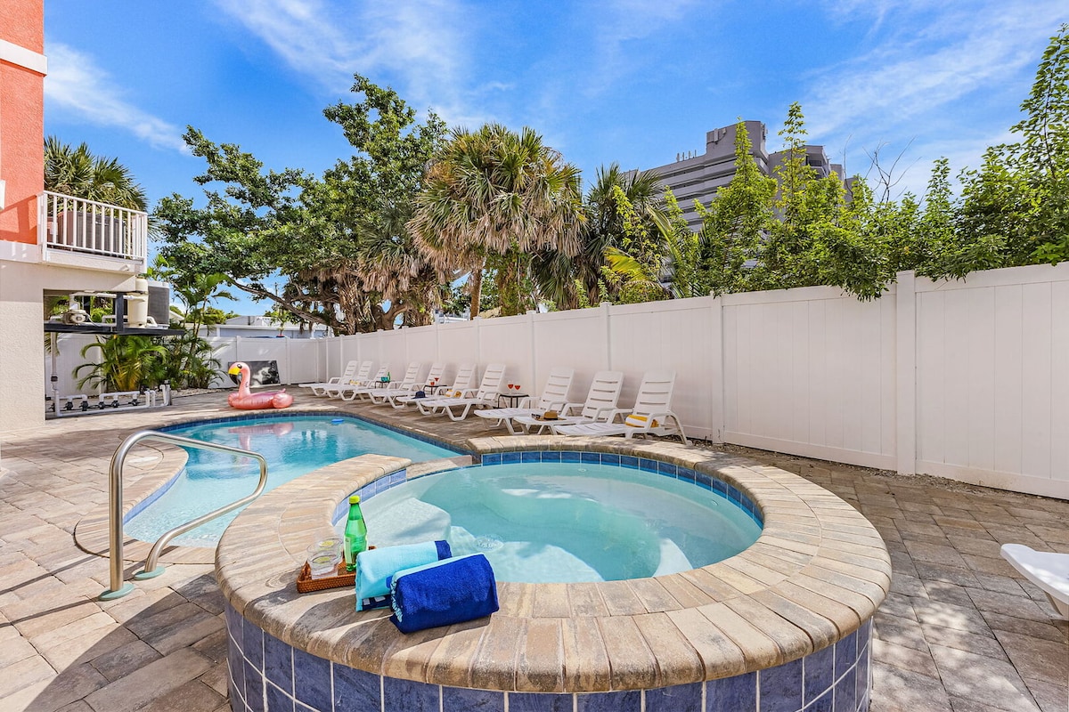 Great location! Heated Pool! Close to the beach.