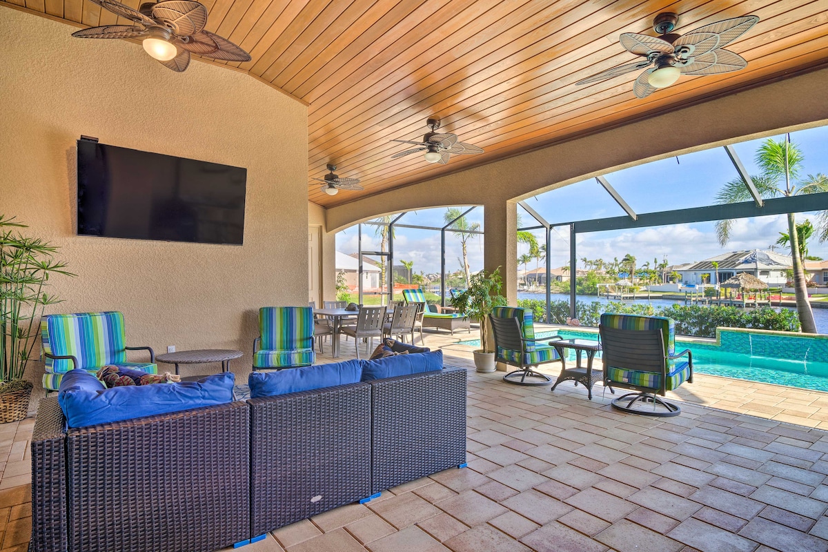 This spectacular 2358 sq. ft. Cape Coral waterfront home will exceed your expectations with its luxurious updates and abundant amenities. Located in a quiet neighborhood, but within minutes to shopping, grocery, restaurants, and beaches! Enjoy a large lanai with a heated pool and spa, outside TV and built-in grill. Includes kayaks, fishing poles, beach items, stroller, private driveway parking, Wi-Fi and printer. Gulf access with boat dock.