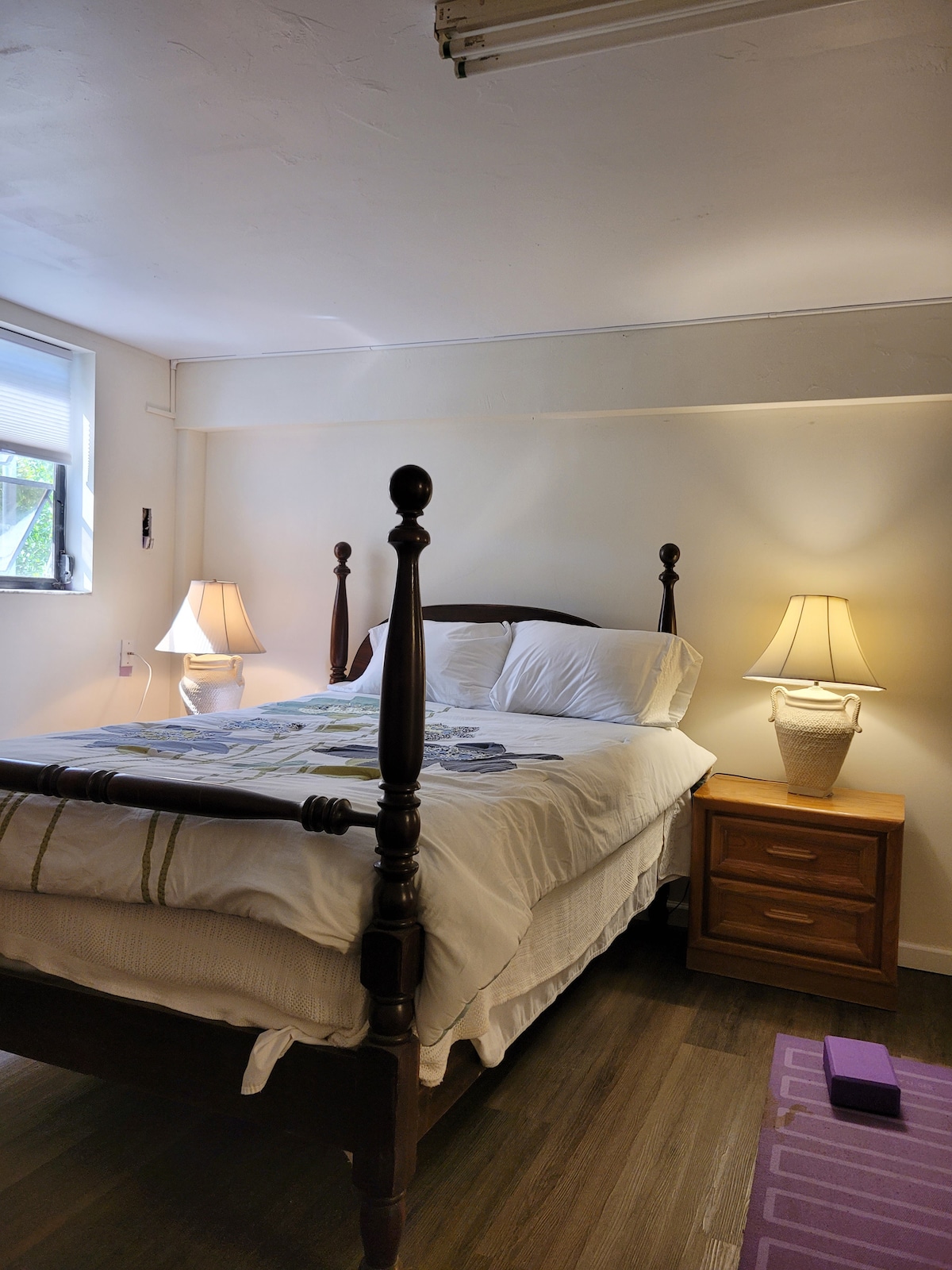 This NON-SMOKERS effenciency apartment has a comfy firm King mattress with a foam topper. Melt your stress away as you sleep . (Please note: this apartment cannot host any SMOKERS or Vaper’s due to severe allergic reactions . There is driveway parking on premises. Easy access to apartment PLEASE NOTE: The Apartments laundry is done on a weekly basis… but personal laundry can be done in a local Laundromat.