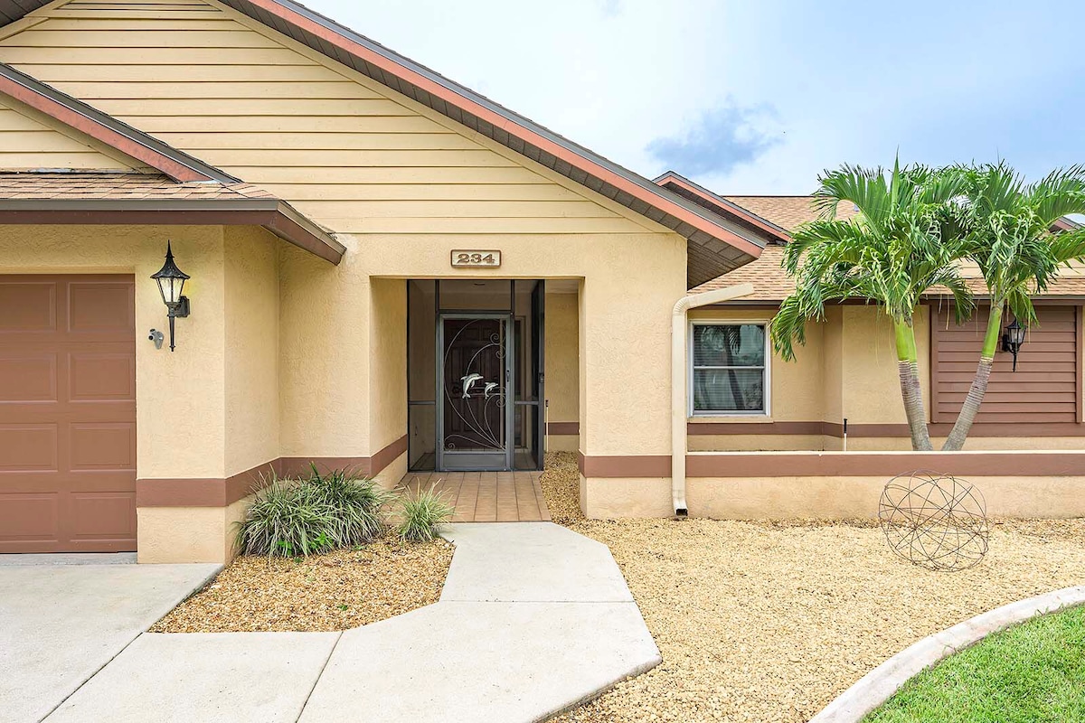 Welcome to sunny Cape Coral! At Palaco Paradise, enjoy an AMAZING HEATED POOL with sun on the lanai all afternoon. Grill out, relax, or head 30 mins to Fort Myers Beach—beach gear included! Stay 4+ nights for FREE waterpark passes. Fish from the backyard or take a 5 MINUTE BOAT DRIVE TO THE RIVER from your own personal dock! Fresh coffee is ready when you arrive, and you're just 35 mins from the airport. Everything you need, nothing you don’t—just sunshine, water, and pure relaxation!