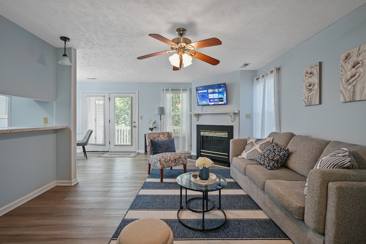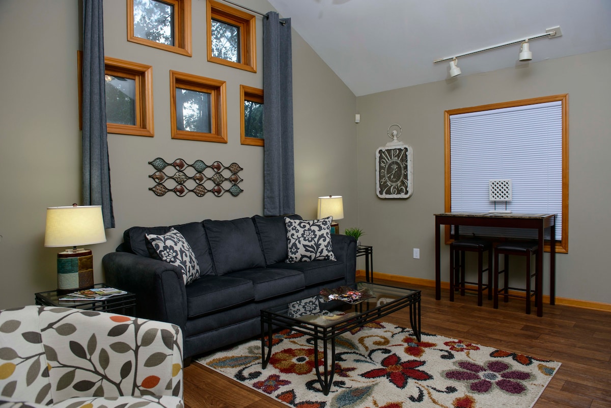 Discover your cozy Fayetteville retreat. Nestled in a secure, well-established neighborhood embraced by the beauty of nature you’ll find a bright 1 bed & 1 bath suite. It includes a generous TV and a convenient pull-out sofa bed. In a prime central location to both downtown and Fort Liberty, it is a perfect haven surrounded by trees. Charge your Tesla and get work done in an ideal workspace for your professional and creative endeavors. This space is the perfect blend of convenience and serenity.