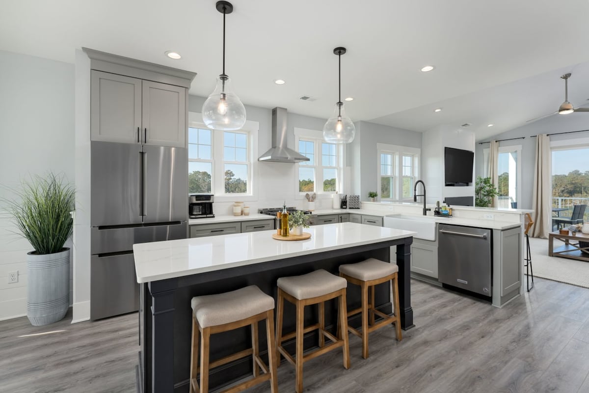 Bring Your Own Boat! This brand new home has a boat ramp in the backyard, making it one of the best spots to book for your next trip to the water! From waterfront views to the sound of boats passing by, to beautifully furnished interiors throughout, this home has so much to offer. This luxurious getaway will guarantee a relaxing, unforgettable vacation. Packed with upscale amenities, this is exactly what your beach vacation has been missing. We are so happy to share our little piece of paradise