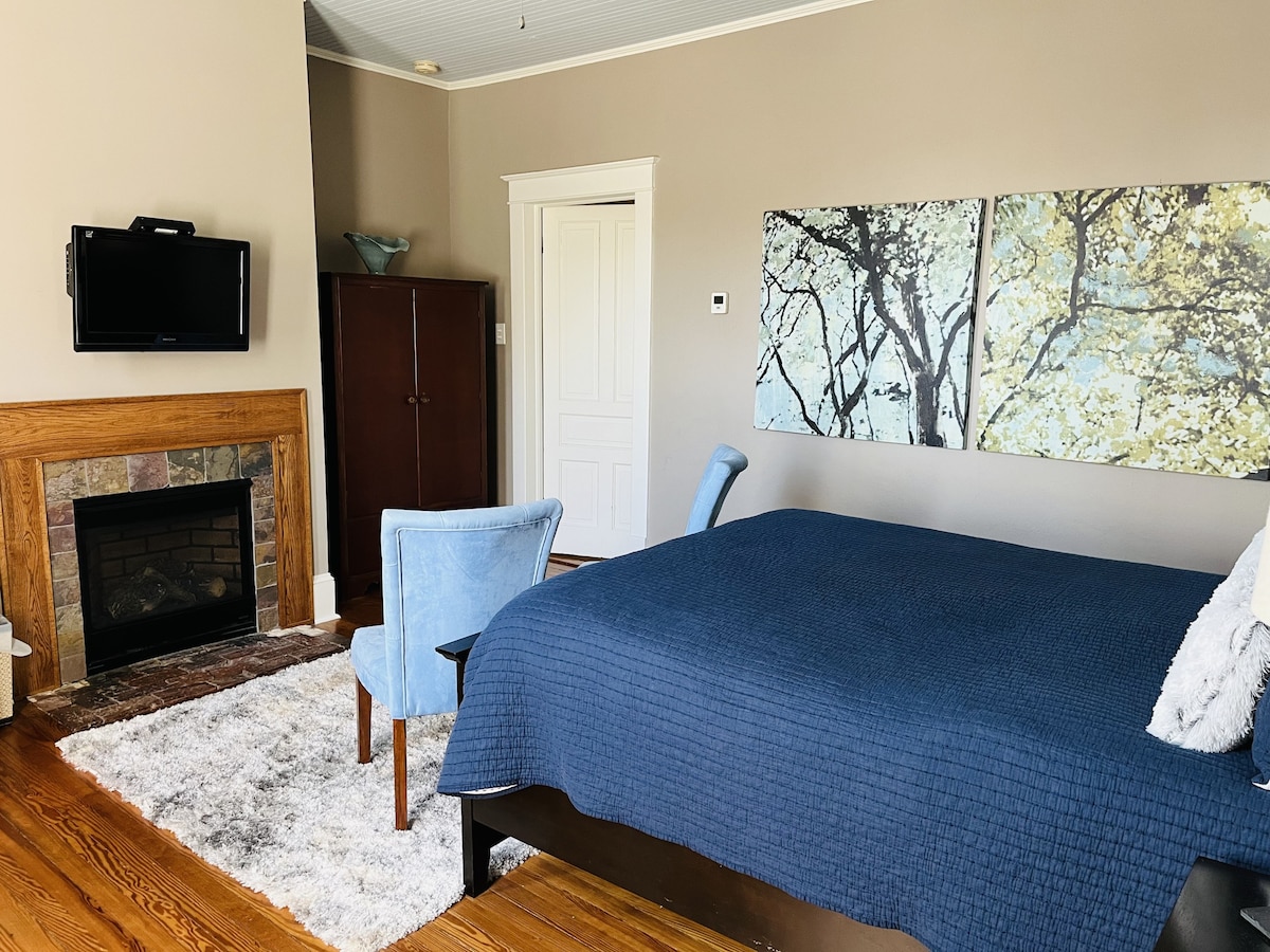 The Kate Guest Suite is a spacious guest room with queen bed, sitting area, smart tv, fridge, coffee/tea station, large closet and ensuite bathroom. In the ensuite bath, you'll find double sinks with storage drawers, large walk-in shower, clawfoot soaking tub and plush fluffy towels. You’ll love the easy access to everything Downtown Wilmington has to offer from this centrally located Historic Home. We look forward to hosting you!