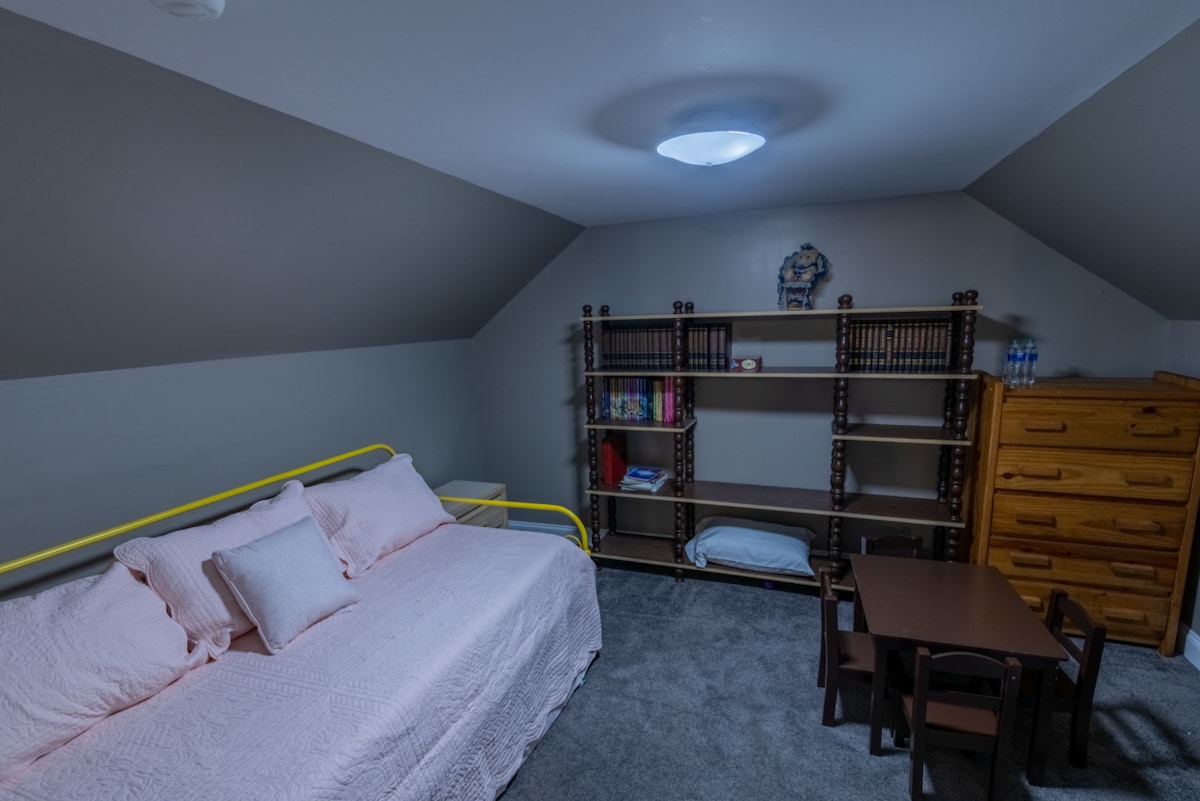 This newly renovated house served as a Bed and Breakfast last season. We have 5 bedrooms and a huge back yard. This house is suitable for an outdoor wedding or other small venue events, and has a large grass back yard. We also have the house next door listed which is a 4 bedroom ranch style house. There is a 6th bedroom that can be available for an additional price. It is ground floor and has three bunk beds in it. Use the add on to add this room and increase your capacity by 6 people.