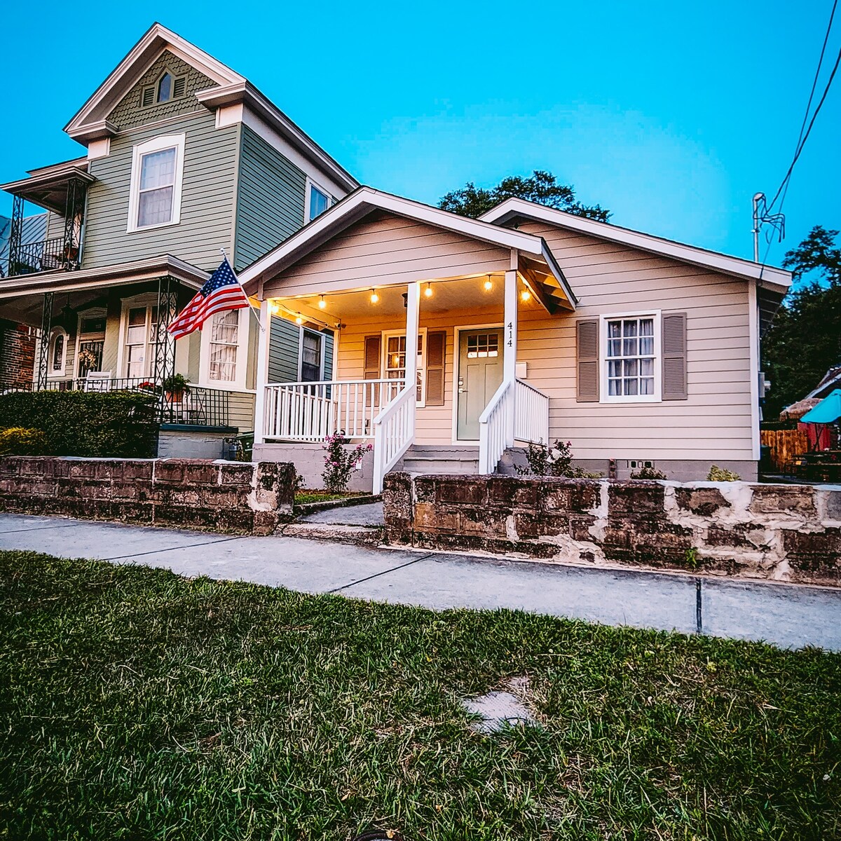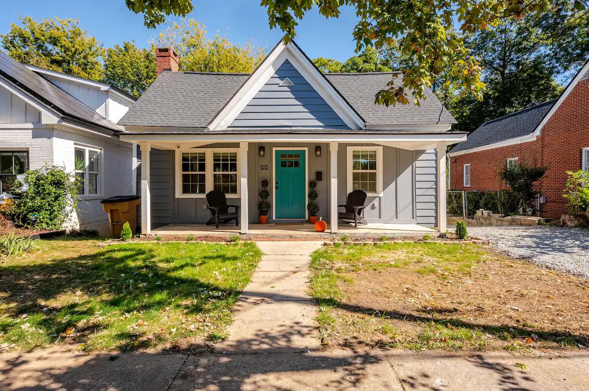 I am so excited to share this little gem with you! She has been completely renovated and has all of the modern amenities while maintaining her original 1922 charm and character! A few highlights: Brand new fully stocked kitchen, new stainless steel appliances, 65”smart tv, Sonos speaker, memory foam mattresses in all bedrooms, high quality linens throughout home, en suite king bedroom w fully remodeled bathroom, covered front and back porches, large fenced in yard, charcoal grill, fire pit