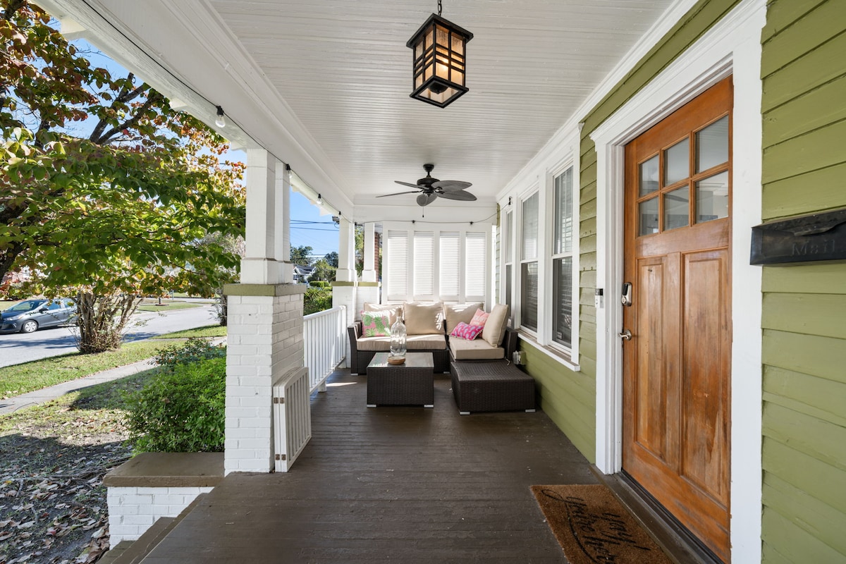 A Chic and Seaside-esque Getaway! This home was newly redone (w/love) in a quaint neighborhood near downtown and a short drive to the beach. 3 brs w/ an open floor plan, great for gathering & entertaining! A private backyard with a grill & firepit. Large front porch with cozy seating. Spacious couch for relaxing; open area for kids upstairs. 1 mile from the heart of downtown and Riverwalk. Explore historic downtown Wilm shopping, coffee, restaurants, antiquing or pack up for a day at the beach!