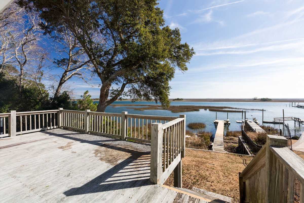 Enjoy waterfront views and relax in this comfy house nestled along the Intracoastal Waterway and the Masonboro Island Reserve. Water views from inside the cottage, outside on the deck, sitting at the fire-pit, playing in the yard, or on the hosts' private pier. You can see lots of boats, a wide variety of native wildlife, sunrises, and more. On the pier you may fish, lounge, launch your kayak, paddle board, etcetra. 10 - 20 minutes from the beaches, board walks, fine dining, boating, and more