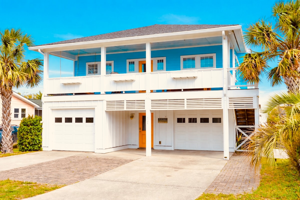 Just 30 steps to Carolina Beach's, sun & sand, waves for surfing, & gorgeous views of the sunrises. You are 3 blocks from the North End Pier & Grill & 1 mile to the historic Boardwalk. There you can shop, dine, see fireworks, rent a paddleboard, or watch a family movie at the Lake. After your beach day, enjoy a game of Corn-hole in a fenced backyard, complete with BBQ , H/C private outdoor shower, firepit, deck & rocking chairs, wind sails & mood lighting. There’s lots to enjoy for everyone!