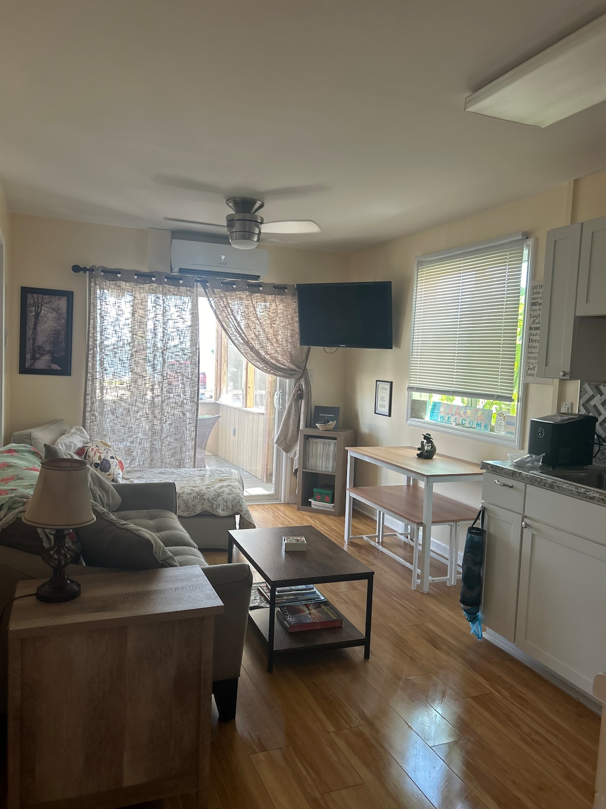 Renovated Master Bedroom Suite with shiplap walls, whirlpool tub and bidet toilet. Very Spa like and perfect for the single or couple that want to get away. Easy walk to beach., farmers market and outdoor concerts . Walking distance to eateries Your room has its own entrance on second story. Large screened in porch also yours to enjoy! We have Roku TV . New bedroom furniture and mattress with adjustable bed . Not set up for children safety.