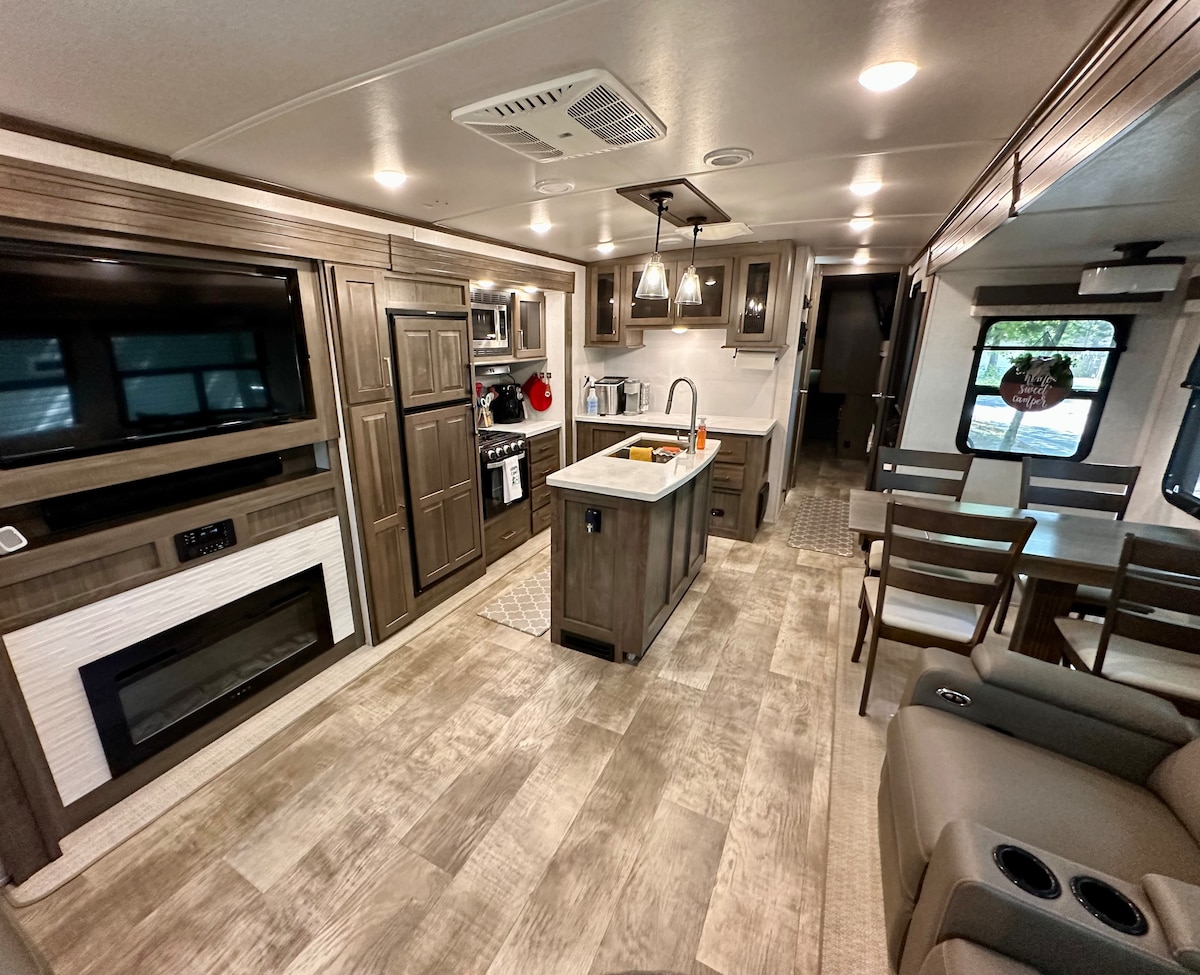 Near Fort Liberty, Fayetteville Airport, and Cape Faer Valley Hospital. Discount for Travel Nurses and Military. 2020 Jayco Eagle 357MDOK Fifth wheel perfect for living in while building a house, PCS’ing, or working on the road. This trailer has it all. Wired with solar for living off grid while enjoying all the comforts of home. 42 feet long with 4 slides, there’s room for the whole family. Sleeps eight comfortably; (4) beds This is COUNTRY LIVING! Country sounds and country critters.