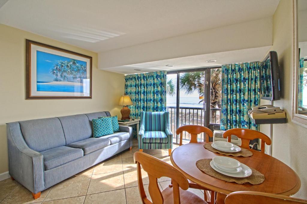 The gem of the Grand Strand, Cherry Grove Beach is the number one beach in South Carolina — and it's where you'll find this modern resort. Here, you're just steps away from the gorgeous coastline. And after you explore the oceanfront, it's easy to float the day away on the lazy river. Play the day away with thrilling beachside activities and water sports like Jet Skiing. Pictures used are stock photos. May not be exact room. Must be 21 years old to check in.