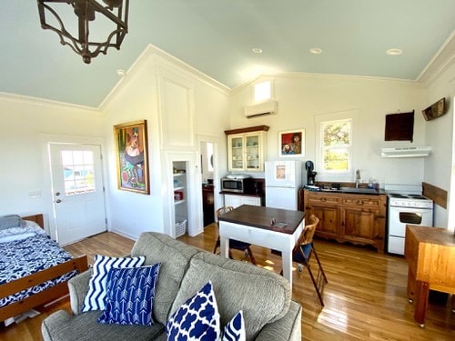 This casita might be tiny, but it has big personality. This little treasure lives in the heart of Raleigh, waiting to support your next city adventure. Please note this rental lives in owner's back yard, accessible by driveway. We've built this place so that you can optimize your stay. Cook a meal in the fully equipped kitchen. Lounge on the patio and enjoy a meal at the indoor / outdoor bar. Customize the main space for living or sleeping with our easy to use murphy bed. See you soon!