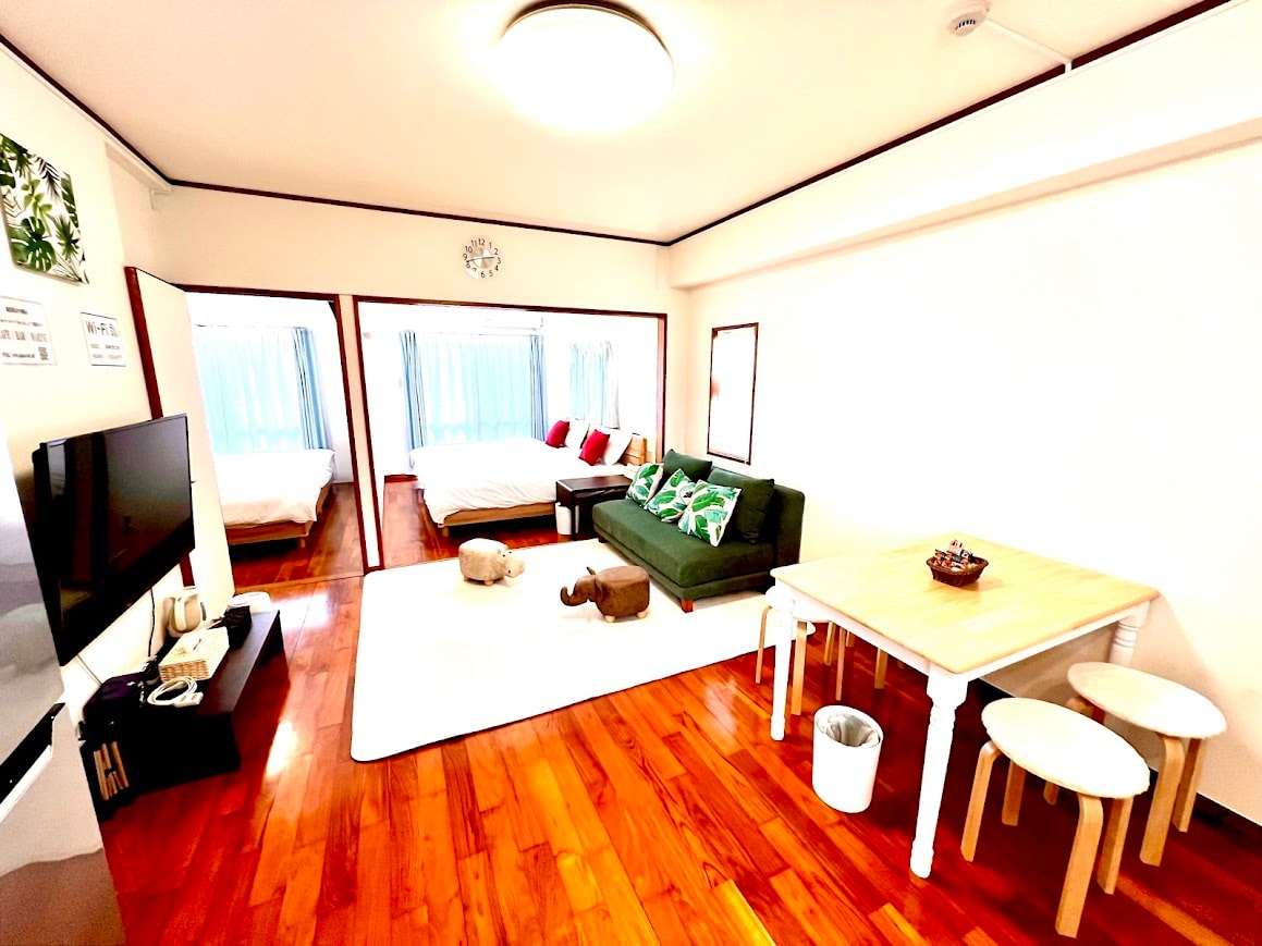 沖縄県北部名護市に日本が世界に誇る【和】を基調とし、 古き良き日本の伝統文化を身近で触れ・体験していただける空間を ご用意させて頂きました。 和の伝統と欧米のモダンスタイルを融合させた和モダンのリビングルーム 日本の伝統工芸である畳を全面に使用したダイニングスペース 1つのお部屋で2つの和を表現させて頂いております。 お部屋は、最大6名様までの宿泊が可能となり、 ご家族でのご宿泊も可能となっております。 沖縄の代名詞ともいえる白い砂浜と青く透き通った海まで車で5分! 沖縄の観光名所【美ら海水族館】まで車で30分と 沖縄県の北部を楽しんで頂くには非常に便利な場所となります。 是非、華と茶の宿KACHAにご宿泊頂き、 日本ならではの【和のおもてなし】存分に堪能ください。 ★ 駐車場:2台まで駐車可能! ┗最大で普通車3台・小型車4台分のスペースがございます。 3台目、4台目のスペースをご希望の場合は空き状況を確認いたしますので、チェックイン3日前までに一度ご相談くださいませ^^ ★ 3歳以下の子供は無料! ★ WiFi機器あり!