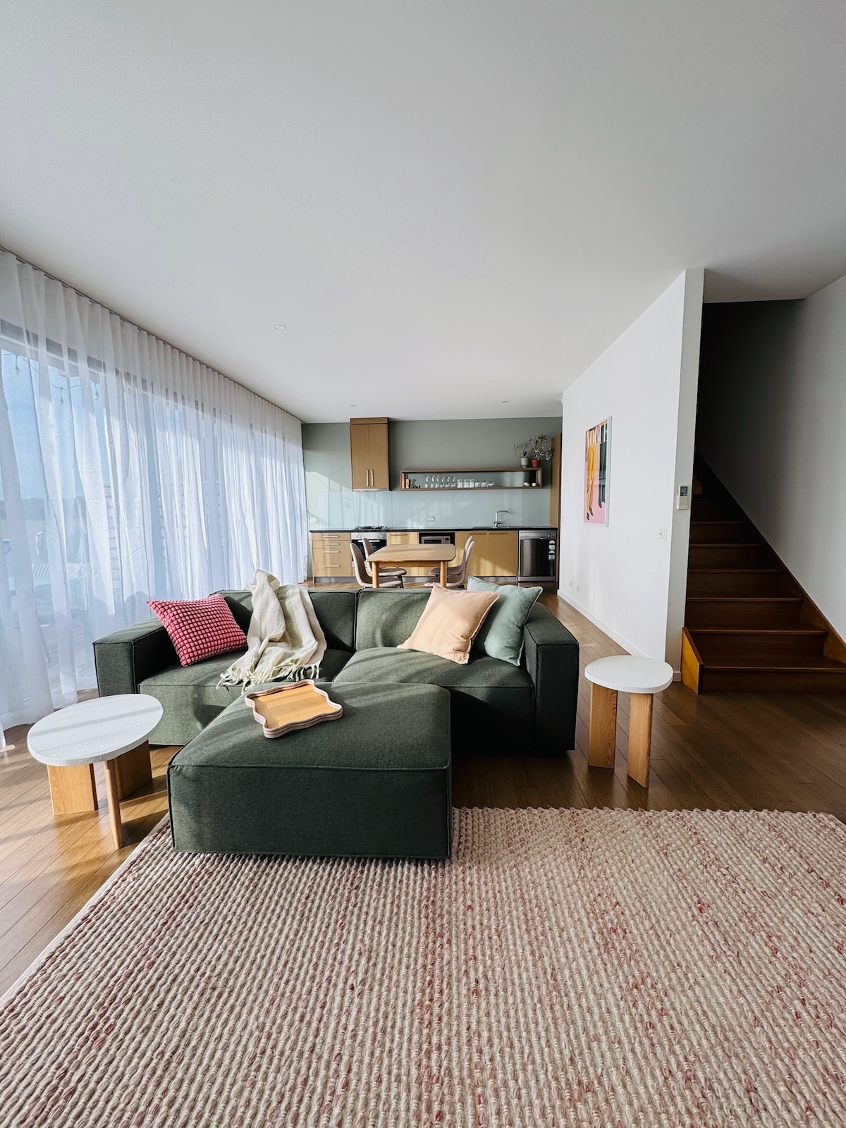 Surrounded by native moonah trees in a lovely quiet neighbourhood, is this private guest apartment. Stylishly decorated, thoughtfully designed, and just 800m from the popular Tyrone Beach. Enjoy the light filled but private indoor space, which is well appointed yet compact and with a nice fresh feel. Lounge about the stylish resort-like under cover outdoor space which has been a huge hit with guests. Very suitable for individuals or romantic couples, come and recharge your batteries.