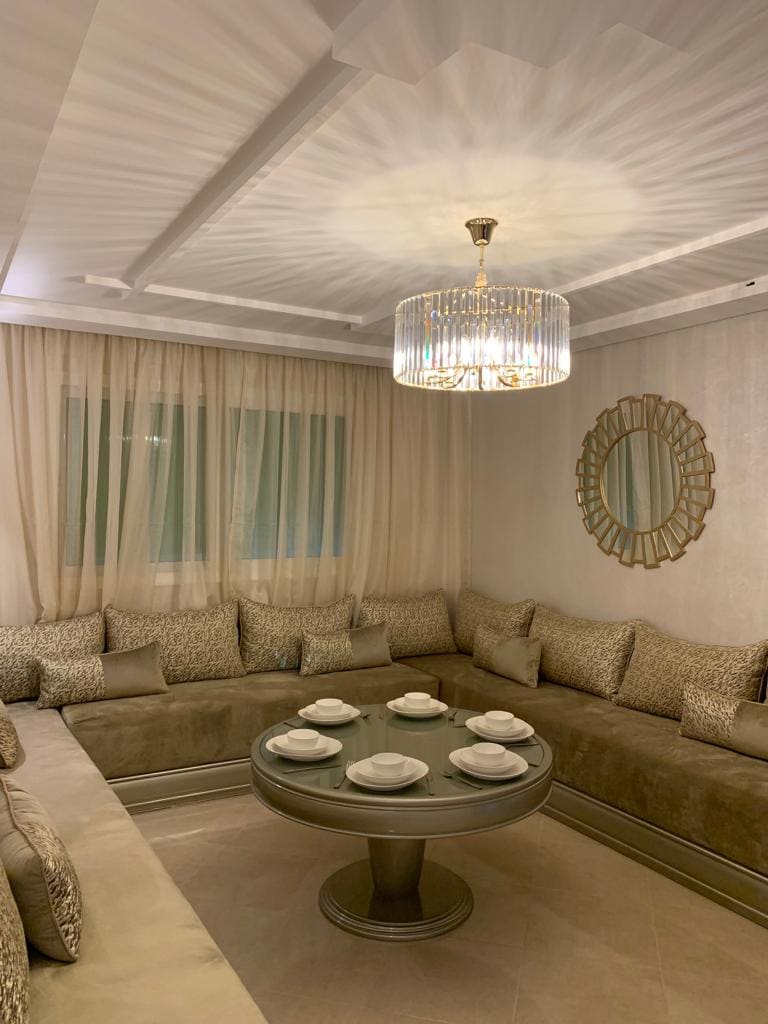 Détendez-vous dans ce logement calme et élégant. Joli appartement à deux pas du GRAND STADE de Tanger Agréable et apaisant, l’appartement se compose d’un salon élégant ensoleillé avec une chambre (lit neuf 180) La salle de bain est propre et fonctionnelle Parfaitement équipé, calme et imprégné d'une ambiance cocooning, ce sera le point de chute idéal des voyageurs d’affaires et d’agrément