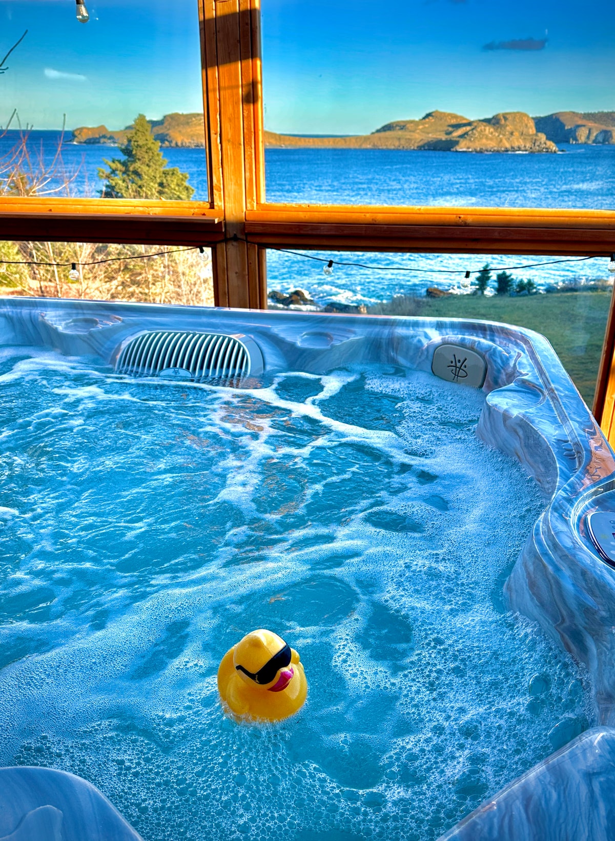 Located in Bay Roberts this secluded coastal cottage is a new build that offers rustic charm with a modern twist along with a beautiful ocean view. It has 2 bedrooms, 1 bathroom, 2 communal areas, and a well equipped kitchen. It also has TV/Internet and a mini split. Outside you can enjoy the comfort of a six- person hot tub, a koi pond, and berry picking in the summer and fall. The covered patio allows for all season use. Ideal for families and friends getting together.