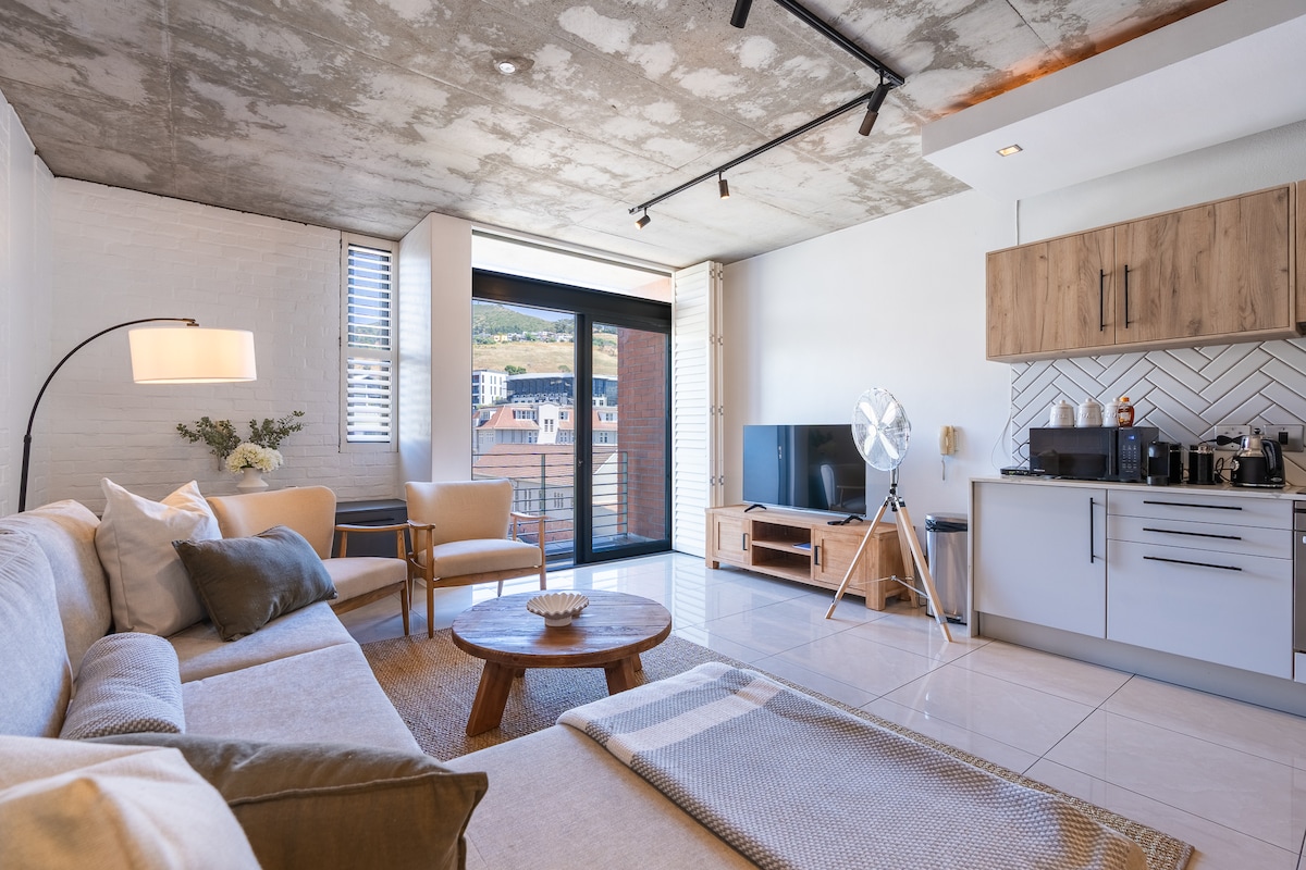 THE BEST VIEWS - in the middle of Cape Town's CBD. The Lookout is a pristine 62 sqm, 1.5 bedroom top floor apartment in the heart of Cape Town's CBD, with the rare quadruple view - enjoy uninterrupted views of the entire city bowl, Table Mountain, Lion's Head and the Harbour Bay. All just within 500m walking distance to the town centre. Tastefully decorated with top-end, pristine finishes and filled with art and greenery, The Lookout offers you a unique experience in Cape Town you won't forget.
