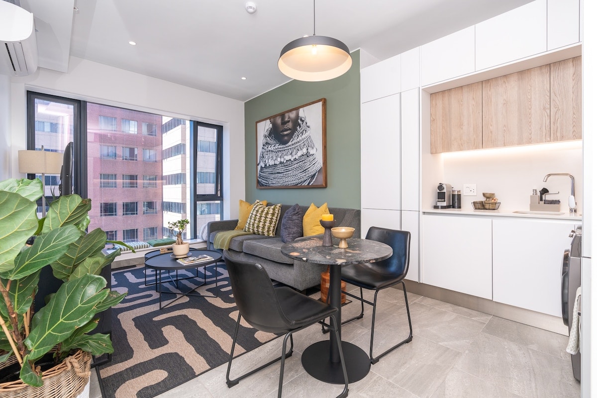 THE BEST VIEWS - in the middle of Cape Town's CBD. The Lookout is a pristine 62 sqm, 1.5 bedroom top floor apartment in the heart of Cape Town's CBD, with the rare quadruple view - enjoy uninterrupted views of the entire city bowl, Table Mountain, Lion's Head and the Harbour Bay. All just within 500m walking distance to the town centre. Tastefully decorated with top-end, pristine finishes and filled with art and greenery, The Lookout offers you a unique experience in Cape Town you won't forget.
