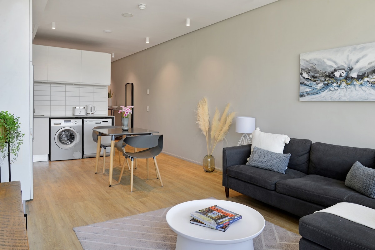This sublime little studio apartment is a celebration of life's simple pleasures - lying in bed and listening to the ocean; reading stretched out on the couch; movie night on the sofa bed. It's also ideal for remote work with its strong and uncapped fibre wifi. Step out your door onto the Promenade and its a very short stroll away from the V&A, Green Point Park, the Oranjezicht Market...not to mention the coffee shops, the restaurants, the beaches and mountains. Go on, treat yourself!