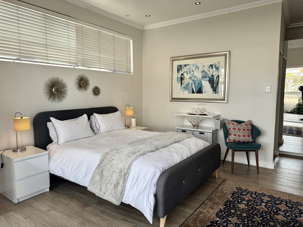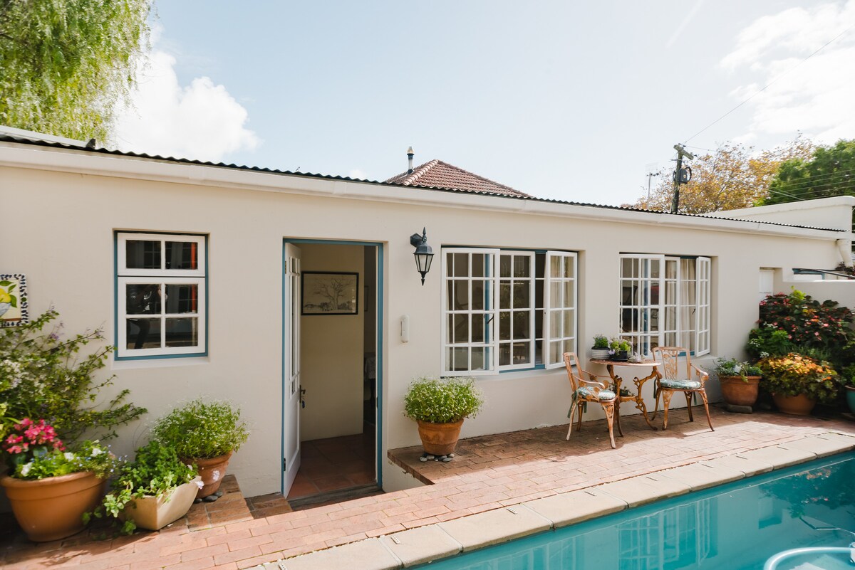 Come and stay in our peaceful studio cottage high up on Helderberg Mountain surrounded by trees and hear the owls hooting as you fall asleep! Beautiful new cottage, with it's own deck and garden and stylishly furnished to meet your every need. And now with solar installed (April 2023) we have NO LOAD-SHEDDING! We've replaced the oven and hob with a fully gas stove so all appliances can be used during load shedding!