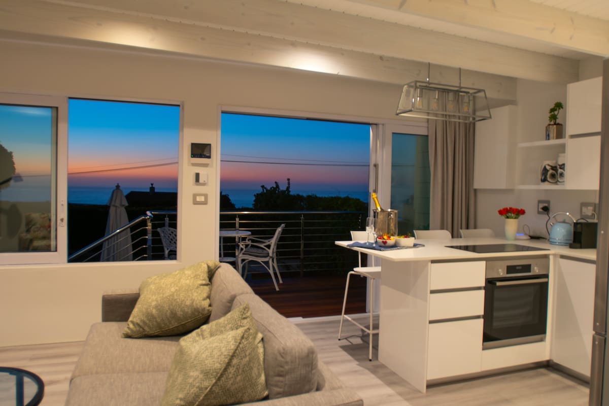 Driftwood Cottage is set in a beautiful quiet residential area of Hout Bay. This self catering cottage is well-equipped and located next to a private family home. It sleeps 2 Adults comfortably but children in a cot or on sofa bed can be accommodated. Loadshedding protected, furnished and light and airy. A stairway leads you to the main bedroom and ensuite bathroom. You'll also find a glass folding door that opens onto a sheltered private balcony with stunning mountain and valley views.