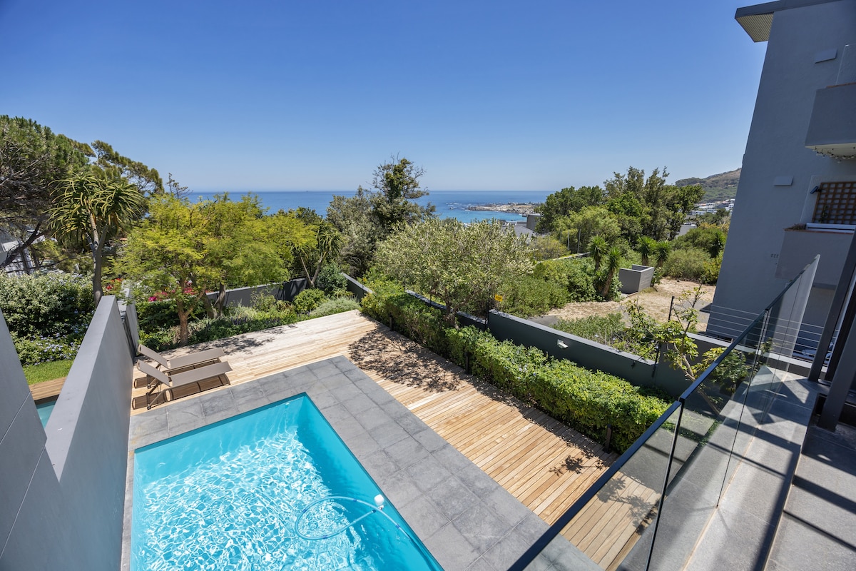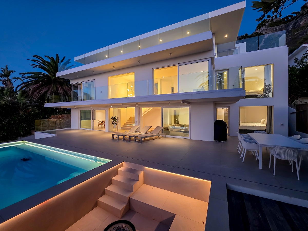 Contemporary meets luxury at the Villa Ravensteyn. A beautiful modern holiday home in Camps Bay with a sublime location. This double-story villa is within walking distance to the infamous Camps Bay promenade. Spoilt for choice with multiple vibrant attractions, shopping and seaside restaurants catering for all tastes. Enjoy your days with sea views and exquisite sunsets. An affinity pool, balcony with sun loungers and a built in gas braai perfect for poolside relaxation & sunbathing.