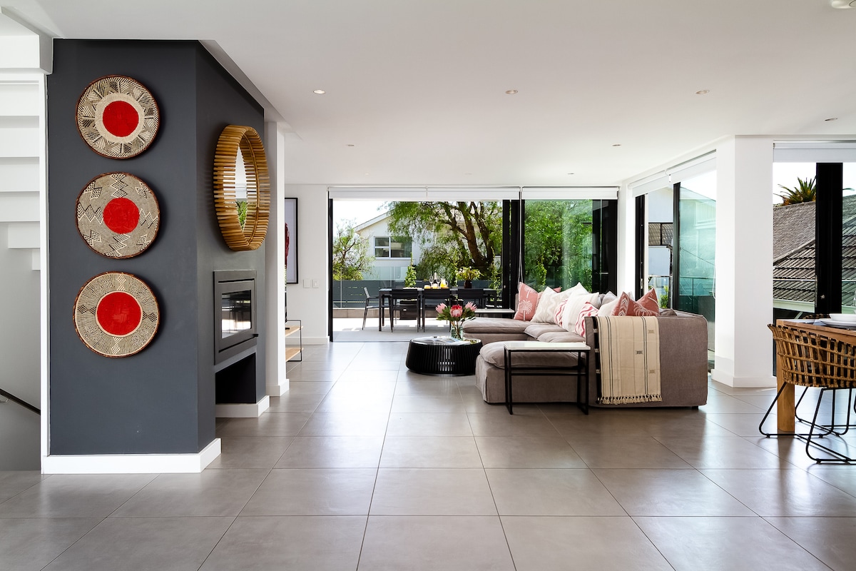 Welcome to your dream home! This apartment is bright, spacious, and has amazing views of the sea and the mountains. You will love the new kitchen and dining area, which open to a lovely courtyard where you can chill and enjoy. The apartment has three bedrooms, one of them is a loft, and solar panels for extra power. It's perfect for families or groups of up to six people. You will be close to everything: the promenade, shops, the Waterfront, Table Mountain, Camps Bay, and Clifton beaches.