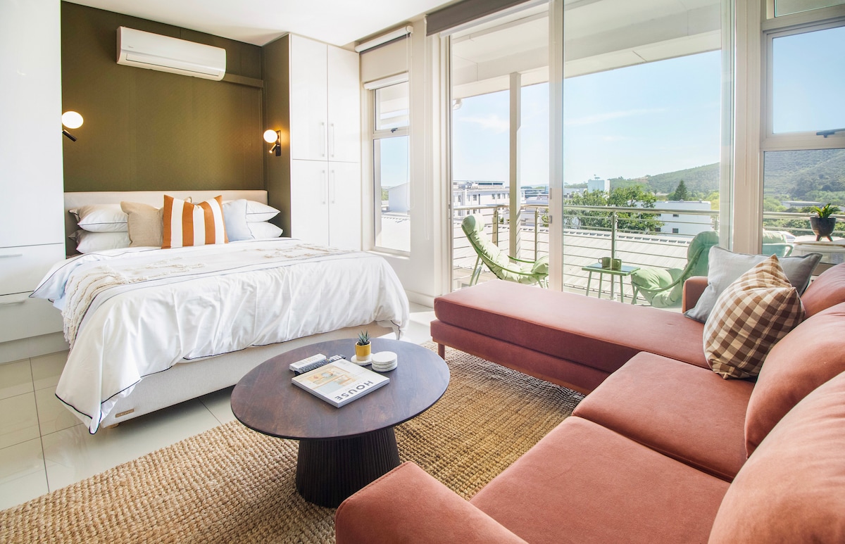 Relax in this stylish, modern, solar-powered loft in Mostertsdrift, Stellenbosch's prime neighbourhood. The open-plan kitchen, cozy living area, and private balcony with stunning mountain views to enjoy your morning coffee or a glass of wine, is perfect for up to three guests. Just a short walk from Lanzerac Wine Estate and close to cafes, shops, and dining spots. Enjoy scenic hikes or mountain biking in Jonkershoek Nature Reserve, wine tasting, or simply unwind—everything is at your doorstep!